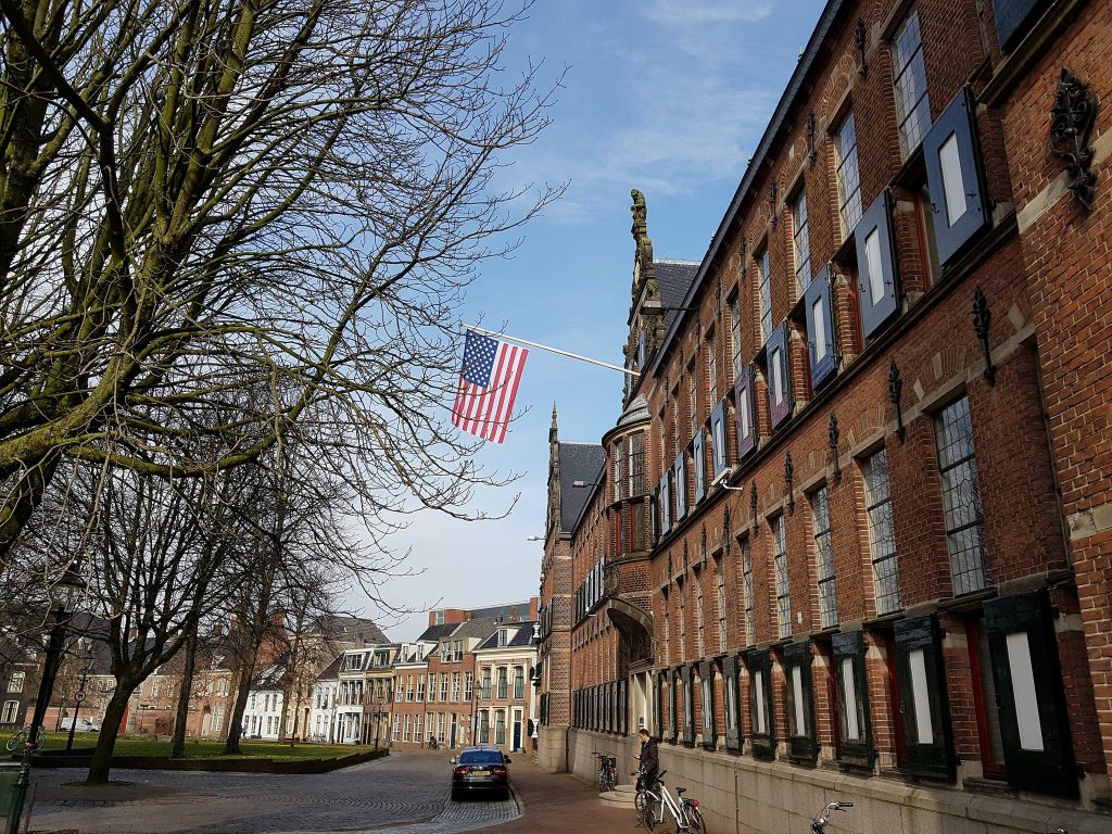 De vlag is dinsdag aan het provinciehuis uitgehangen voor het bezoek van de Amerikaanse ambassadeur Pete Hoekstra aan Groningen.