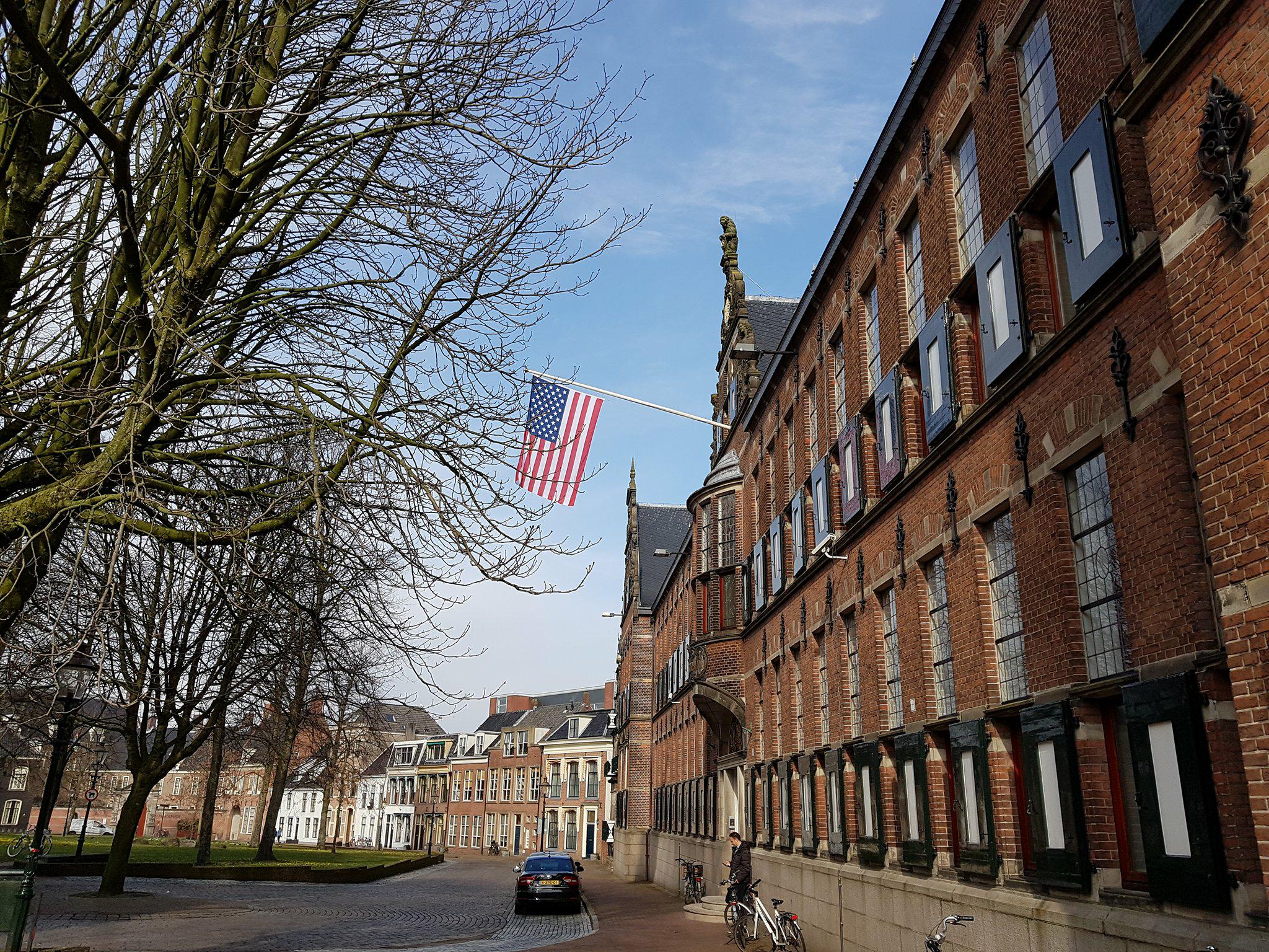 De vlag is dinsdag aan het provinciehuis uitgehangen voor het bezoek van de Amerikaanse ambassadeur Pete Hoekstra aan Groningen.