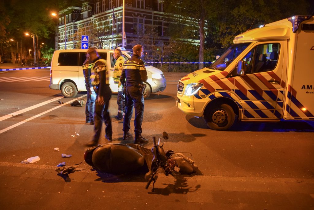 De bromfietser raakte zwaar gewond en moest naar het ziekenhuis.