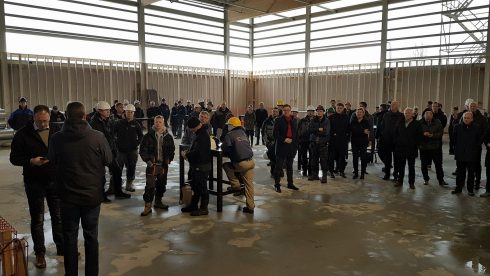 Om te vieren dat het hoogste punt is bereikt waren de wethouders Paul de Rook en Roeland van der Schaaf namens de gemeente aanwezig. Ook mensen van het Noorderpoortcollege, één van de gebruikers van de nieuwe sportaccommodatie, deden zich tegoed aan de uitgebreide lunch die werd geserveerd. Natuurlijk klaargemaakt door leerlingen van het Noorderpoortcollege zelf.