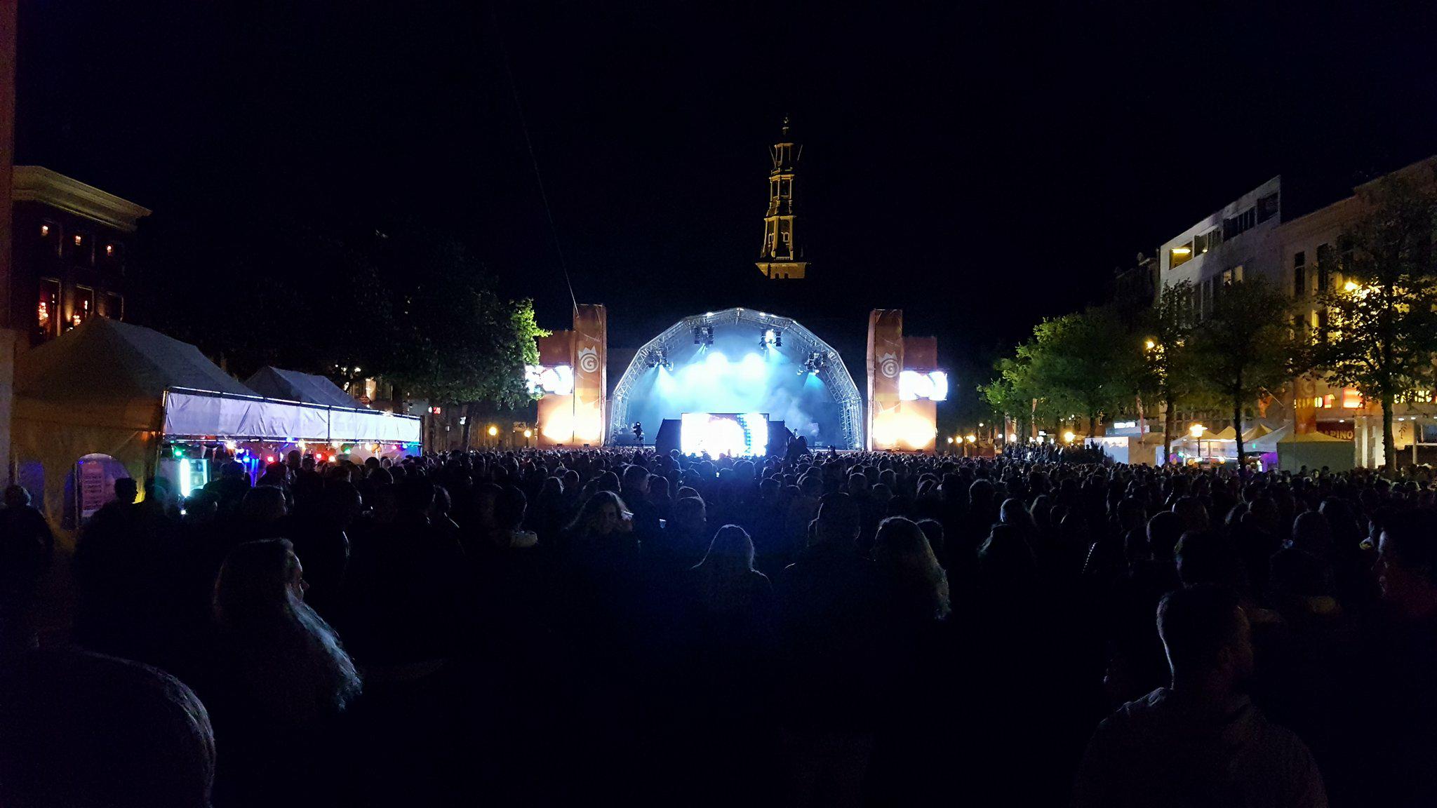 Op het Poeleplein tussen onder andere de Negende Cirkel en Time Out is er bijna geen doorkomen aan. De sfeer zit er goed in en DJ Arnoud zweept de dansende menigte flink op. De Vismarkt met het grote podium aan de kant van de Korenbeurs is voor driekwart gevuld met mensen. Er zijn optredens van onder andere rapper Fresku en de Haagse band Di-rect.