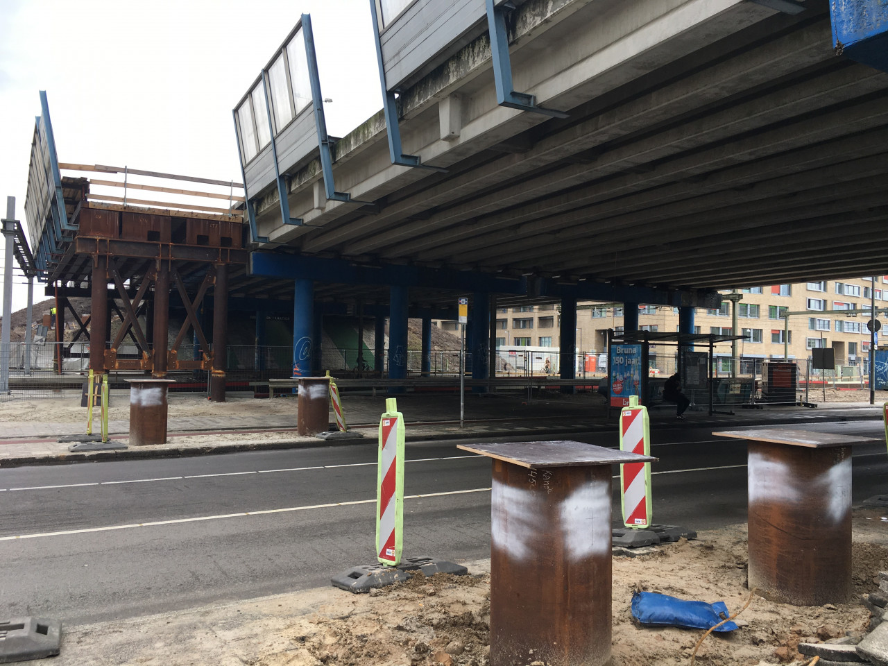 Hoe zo’n tijdelijk viaduct eruit ziet, is al een beetje te zien bij de Esperantokruising. Daar is tijdens de treinvrije periode afgelopen november een deel van het tijdelijke viaduct over het spoor gebouwd.