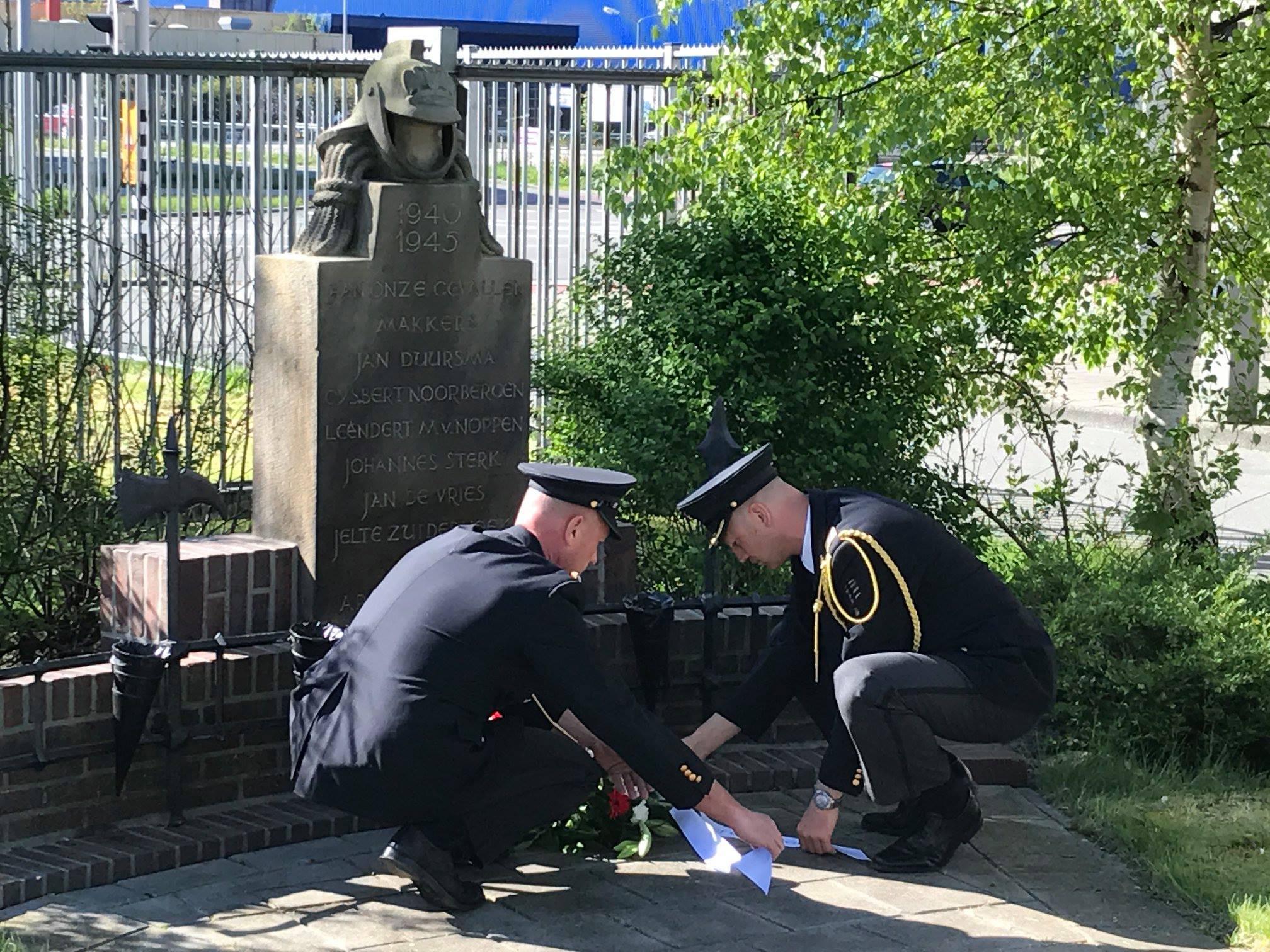 In de ochtend werd door brandweermensen een krans gelegd en werd een moment van stilte in acht genomen. Op de gedenkplaat staan de namen van de zeven brandweermensen die door toedoen van de Duitse bezetter om het leven zijn gebracht. Eén van de namen is Jan de Vries. Hij was tijdens de oorlogsjaren brandwacht bij het korps in de stad. Op 17 april 1945 rukte hij samen met collega’s uit naar een brand bij hotel Victoria, dat in die jaren op de hoek van de Zwanestraat en de Grote Markt stond. De Vries werd door de Duitsers beschoten toen hij benzine probeerde te halen uit een auto. Hij overleed ter plekke.