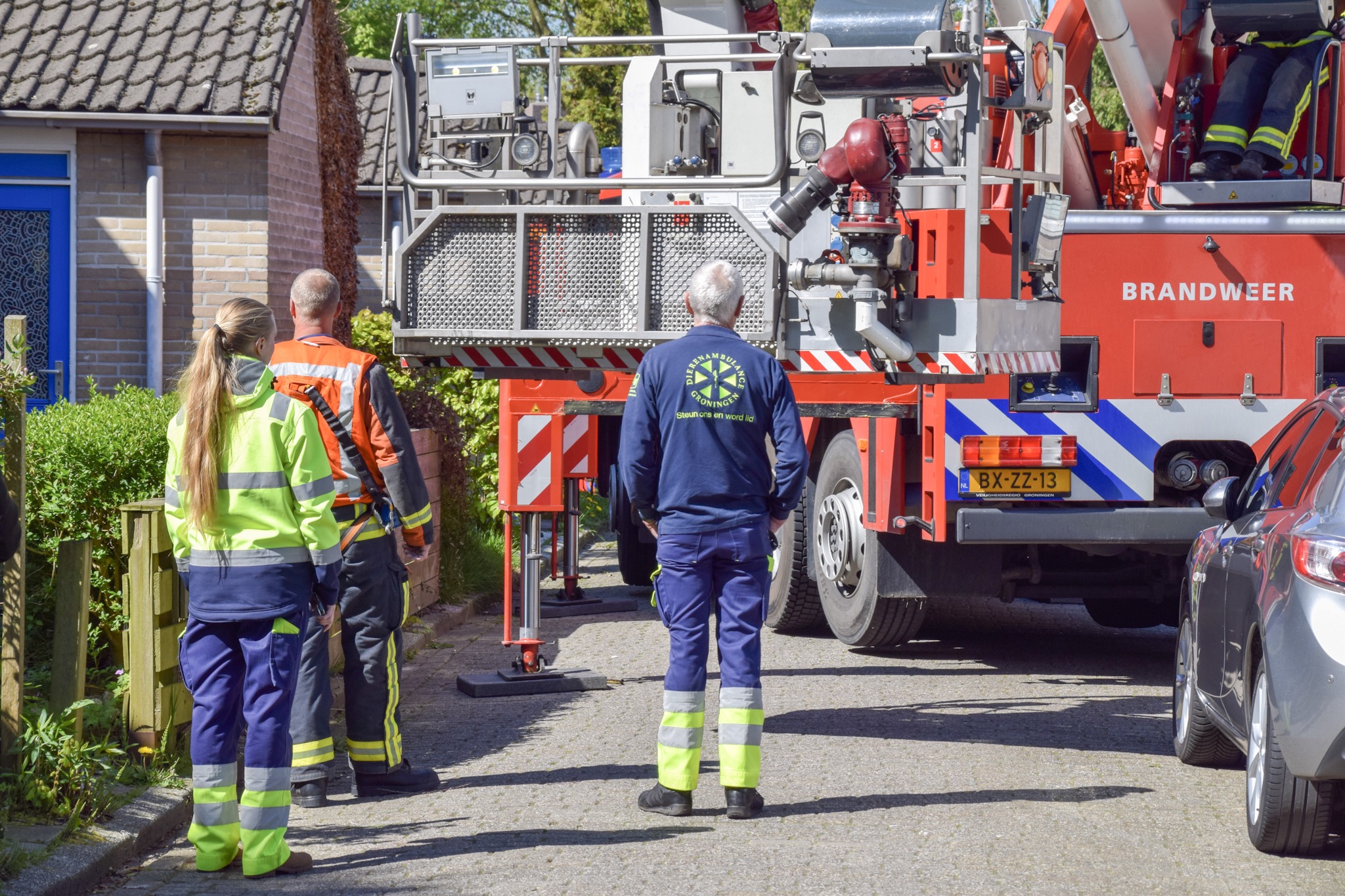 Omdat medewerkers van de dierenambulance er niet bij konden komen werd de hulp van de brandweer gevraagd.