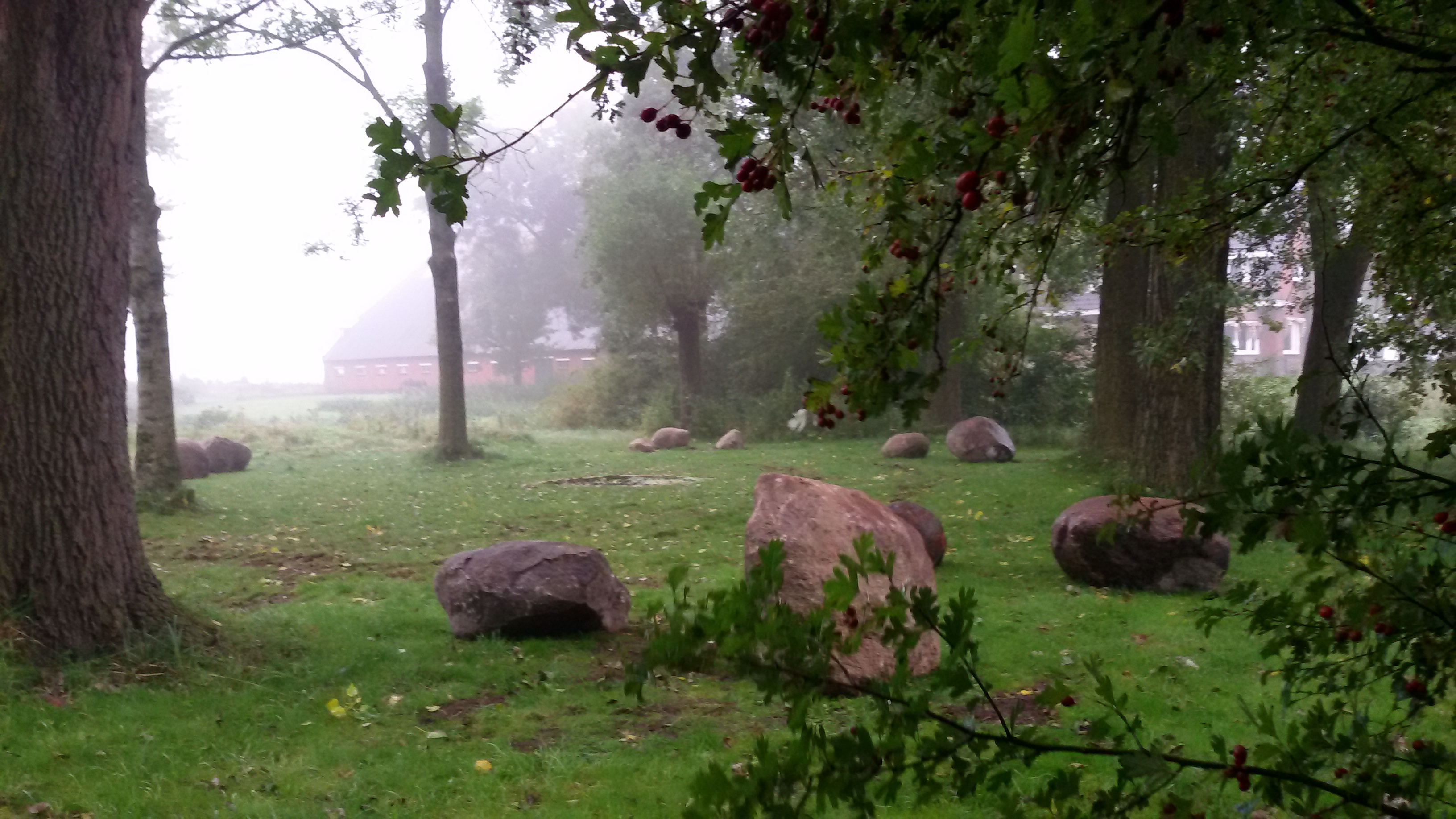 Vorig jaar werden deze stenen er gelegd. Steenkunstenaar uit IJsland raakte geïnspireerd door de bijzondere sfeer op de vuurplaats en gaat van enkele keien kunstwerken maken.