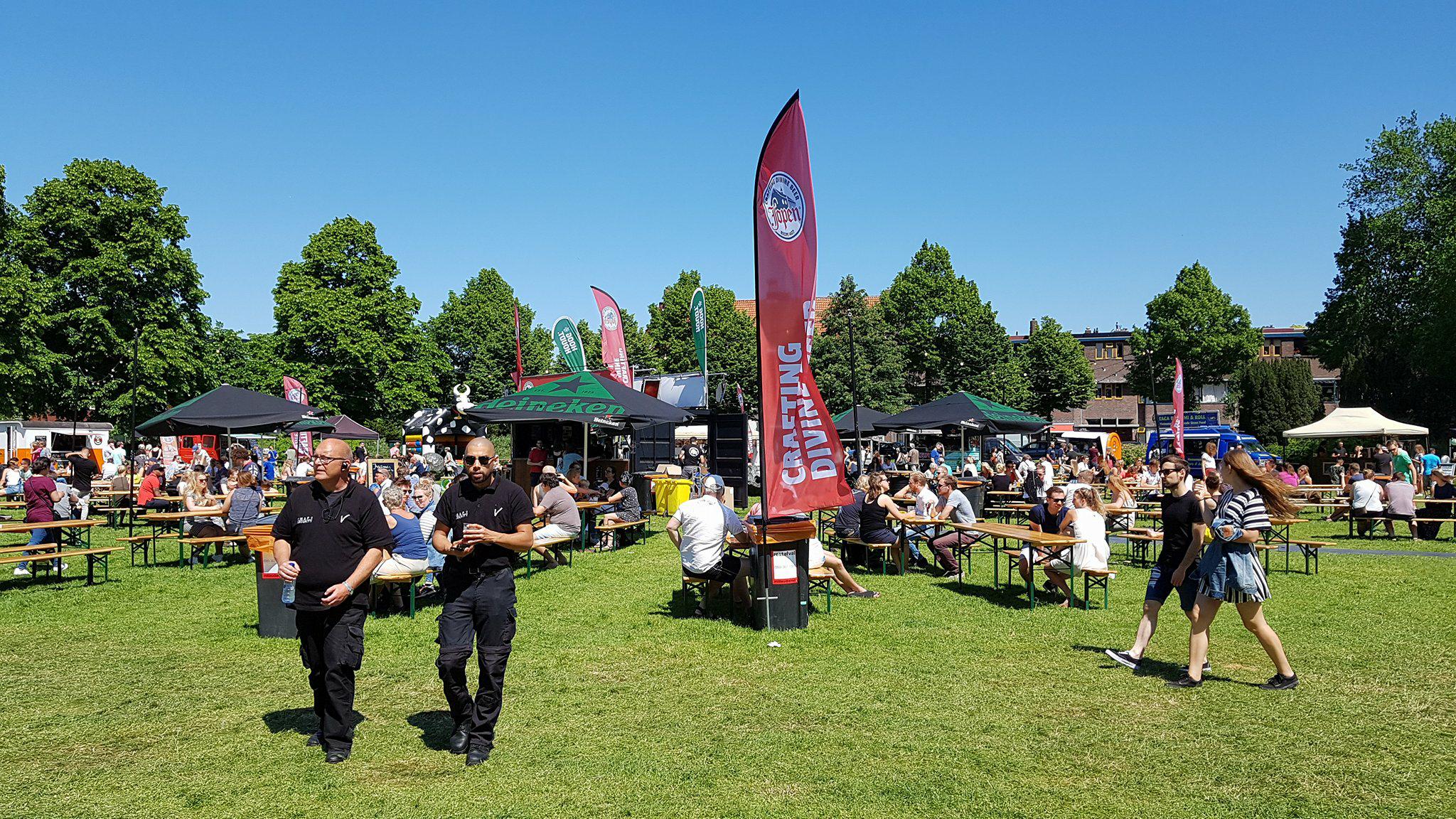 “Zaterdag was het nog een beetje rustig want de weersvoorspelling was niet zo goed maar gisteren was het echt heel druk, zeker een paar duizend mensen. En vandaag lopen er ook alweer honderden bezoekers rond. Wij komen uit Schiedam en de trip niet voor niets gemaakt. Wij zijn dik tevreden”, aldus Kymia en Kitty die met de foodtruck Kripik in een hoek van het veld staan.