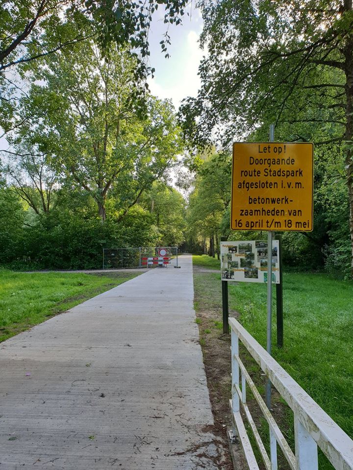 Een splinternieuw betonnen pad slingert zich door het Stadspark.
