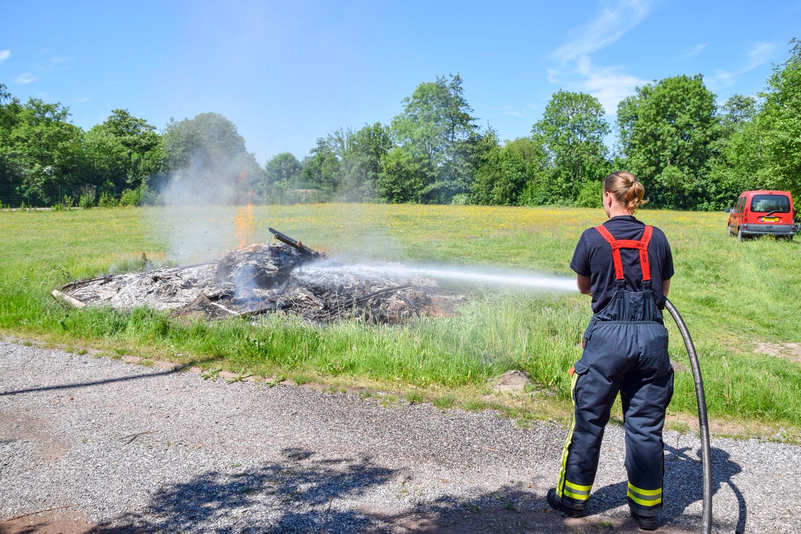 De melding van de brand kwam rond het middaguur binnen op de meldkamer van de hulpverleningsdiensten. Een voorbijganger zag vuur boven de bosschages uitkomen en waarschuwde de brandweer die daarop uitrukte met een bluswagen. Bij aankomst bleek er een stapel hout in vuur en vlam te staan. Brandweerlieden hebben het vuur bedwongen door middel van één straal hogedruk.
