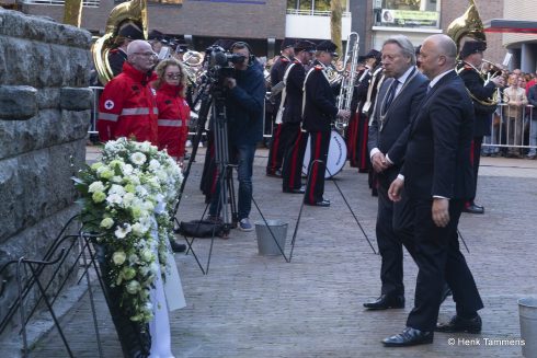 Na de twee minuten stilte en het Wilhelmus werden er kransen gelegd bij het provinciale monument.