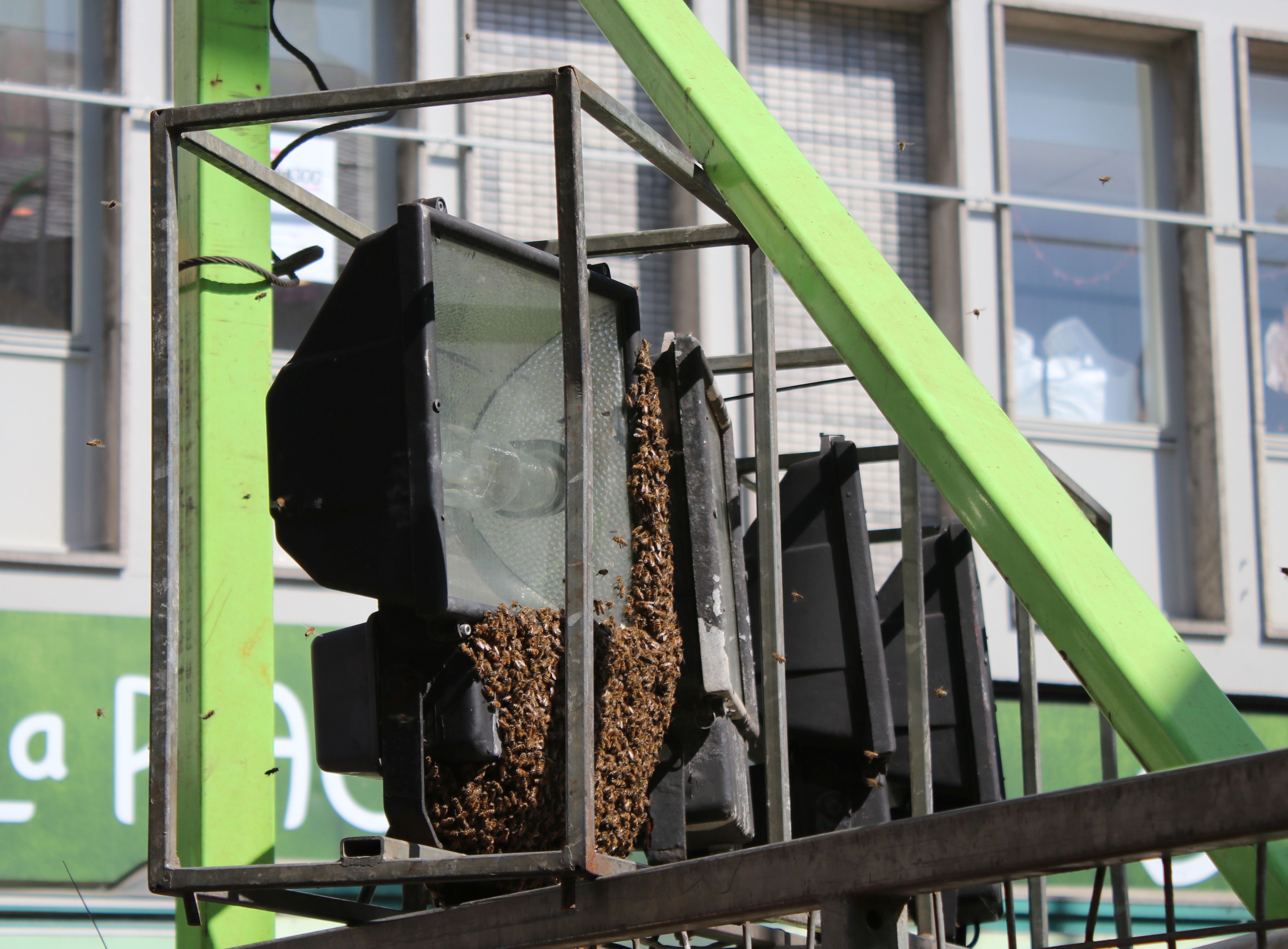 Bij de kermis op de Grote Markt is dinsdag sprake van een bijenplaag. Het gaat om honderden bijen, die zich bevinden bij een lamp vlakbij de achtbaan.