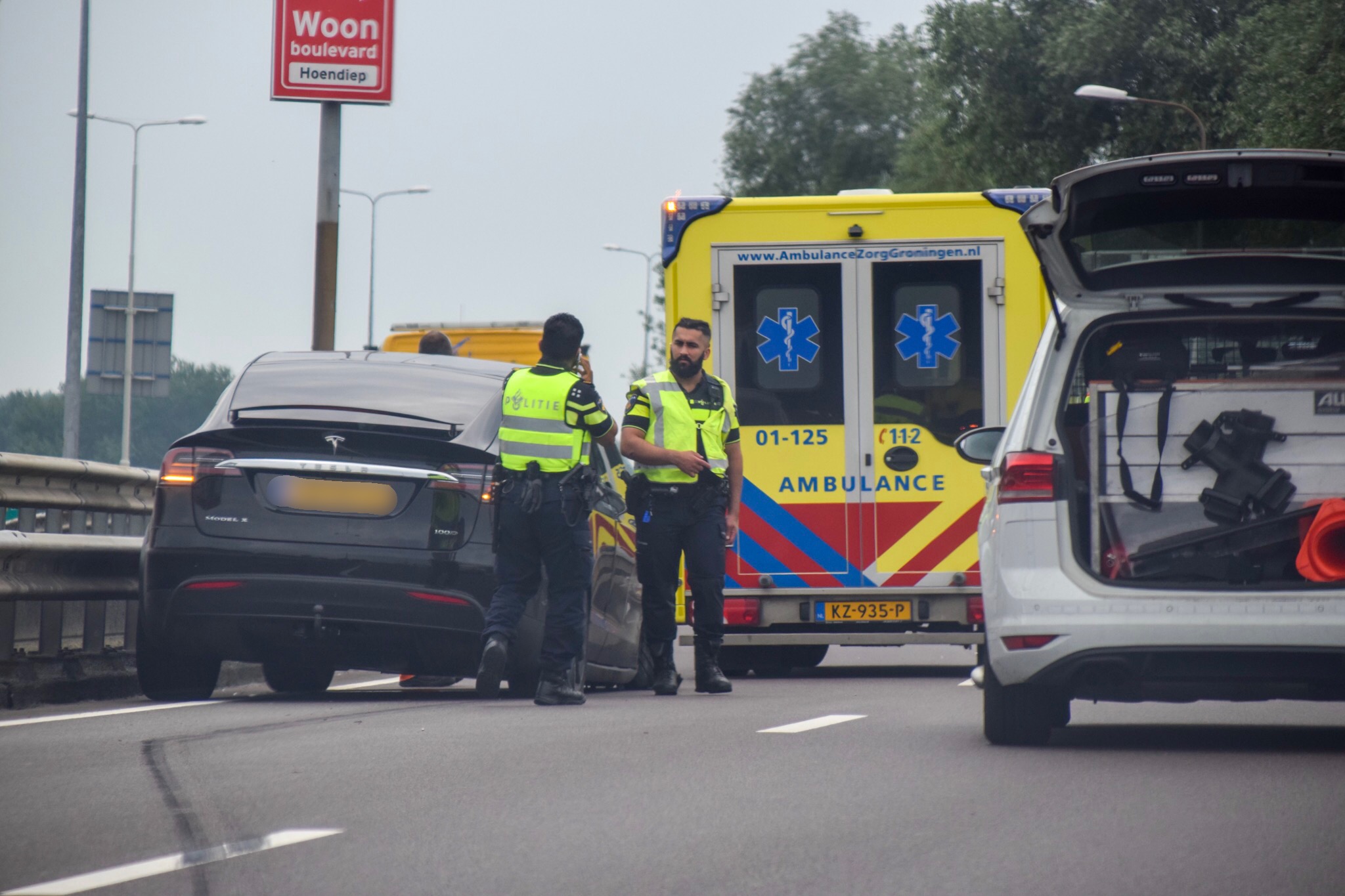 Door een eenzijdig ongeval op de ringweg bij de woonboulevard Hoendiep is vrijdagavond een auto zwaar beschadigd geraakt.