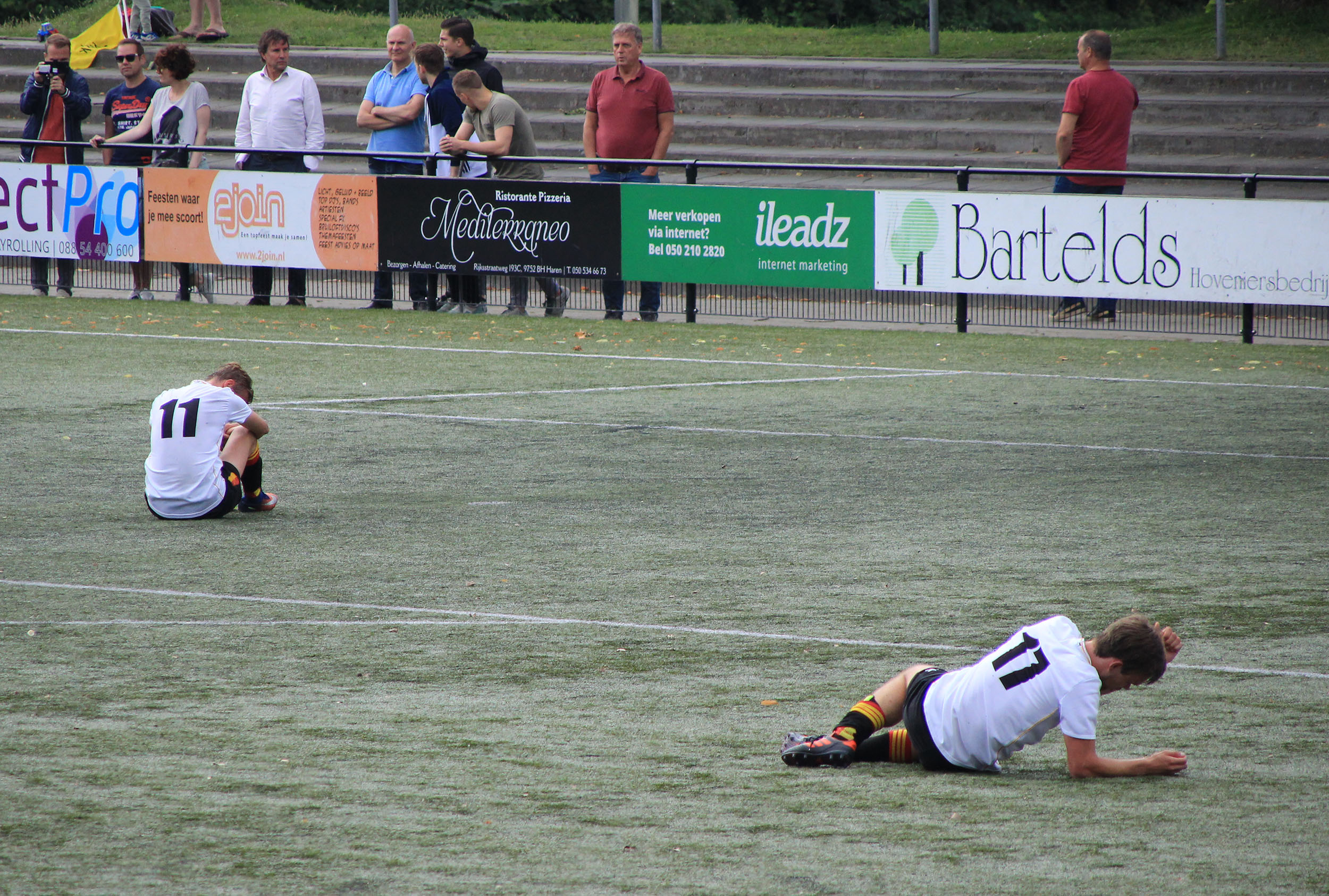 Foto Andor Heij. Verslagenheid bij de spelers van Be Quick na de nederlaag tegen GOES.