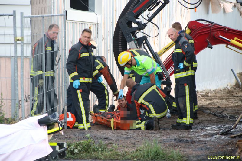Bij het afgraven van zand gleed er een betonnen plaat weg en kwam de man vast te zitten. De hulpverleners wisten het slachtoffer met een kuipbrancard uit de benarde positie te bevrijden en te stabiliseren. De brandweer zette bij de reddingsactie een tankautospuit, een hulpverleningswagen en een hoogwerker in.