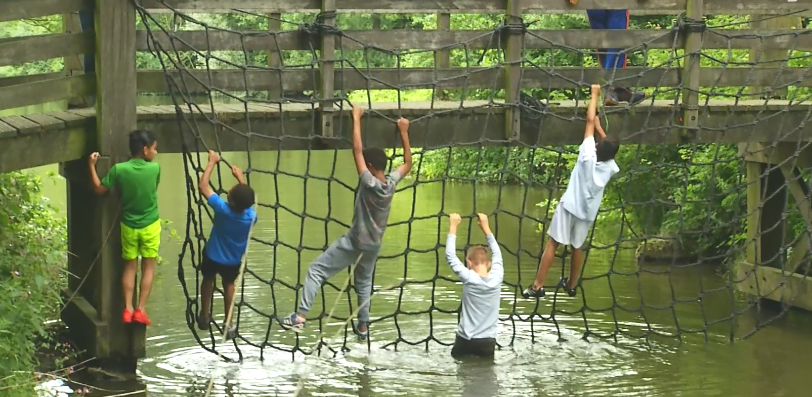 Tijdens het survivallen kunnen de kinderen deelnemen aan verschillende onderdelen. Onder andere touwklimmen, boogschieten en vlotvaren komen voorbij.