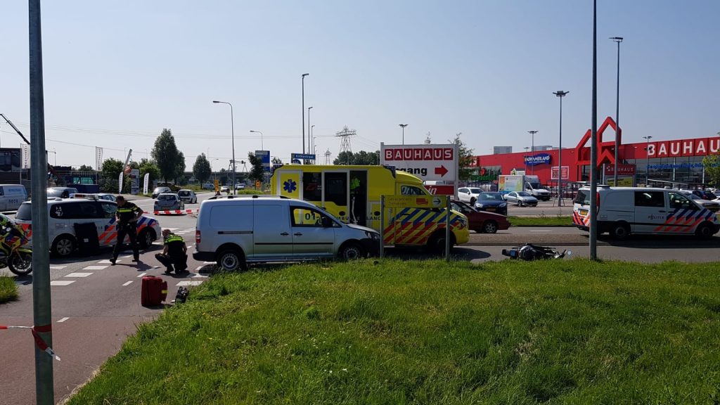 Het ongeluk gebeurde rond 11.30 uur. Door nog onbekende oorzaak werd een scooterrijder geschept door een automobilist. De bestuurder van de scooter kwam hierdoor ten val. Hulpdiensten waren snel ter plaatse. Het slachtoffer is overgebracht naar het ziekenhuis.