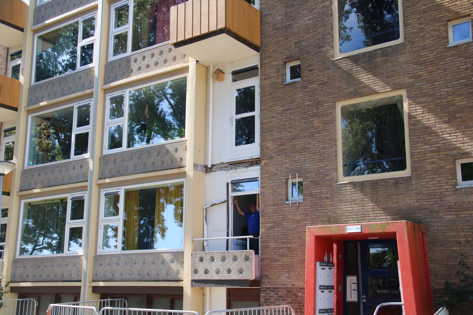 Het ongeluk gebeurde rond zes uur. Het gaat om een balkon van een appartement op de tweede verdieping. De bewoner hoorde geluid en zag dat het balkon naar voren hing. De gewaarschuwde woningcorporatie Lefier heeft het balkon inmiddels verwijderd.