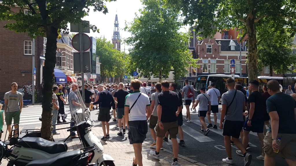 Supportersgeweld in de achtertuin in aanloop oefenduel @fcgroningen – Werder Bremen. Ik snap het wel, die stakkers hebben alweer een aantal weken droog gestaan. Politie heeft er moeite mee, waar blijft ME?