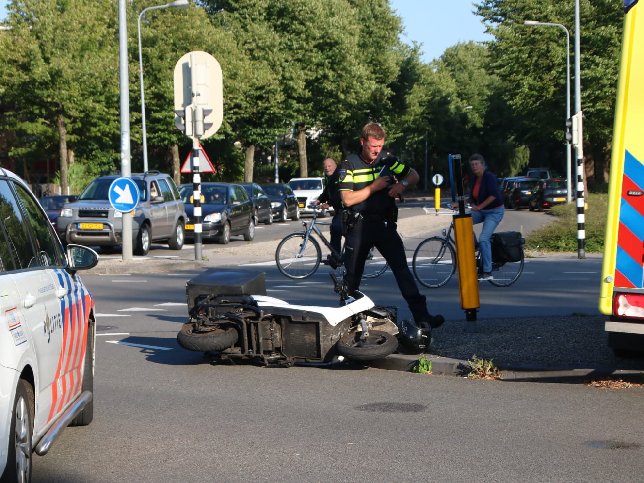Het ongeluk gebeurde rond de klok van 19.00 uur op de kruising met de Vrydemalaan. Een scooterbestuurder stak de kruising over en werd daarbij door nog onbekende oorzaak geschept door een automobilist. Hulpdiensten waren snel ter plaatse. Ambulancemedewerkers hebben de scooterrijder in de ambulance gecontroleerd maar hij hoefde niet mee naar het ziekenhuis.