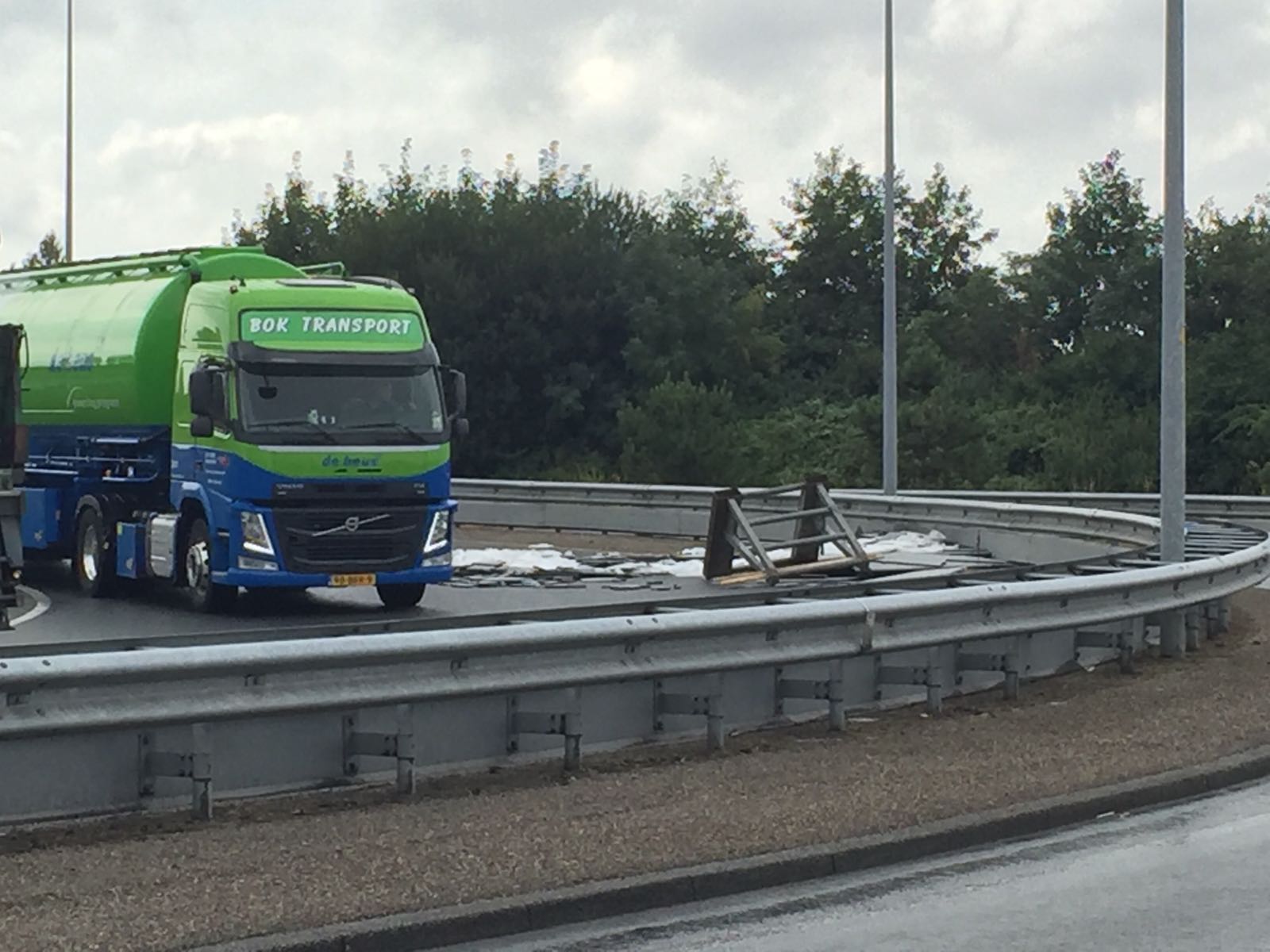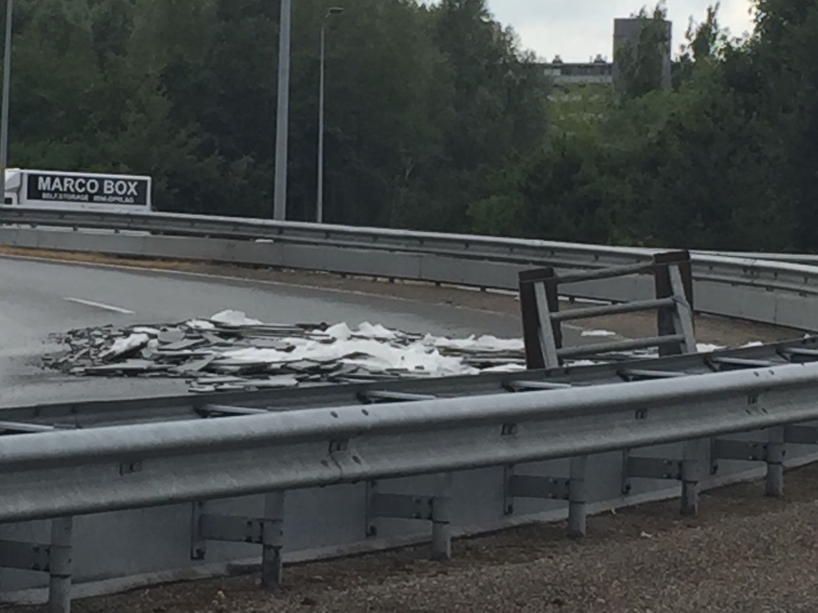 Zyn t grafsteenplaten die op de weg beland zyn of sierbestrating voor hoveniersbedrijf...ziet r scary uit zoals vervloekte beheksing met die vrachtauto....was ie op weg naar het uitvaartcentrum...best kostbaar materiaal die natuursteen wel zonde/pechgeval.