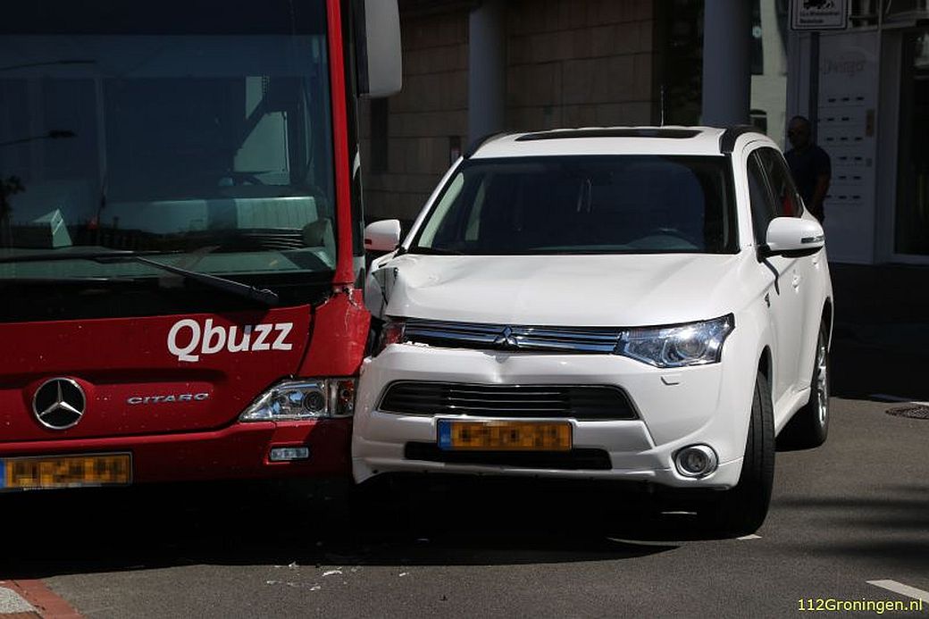 Aan de Westerhaven in de Stad is vrijdagochtend een aanrijding geweest tussen een personenauto en een lijnbus.