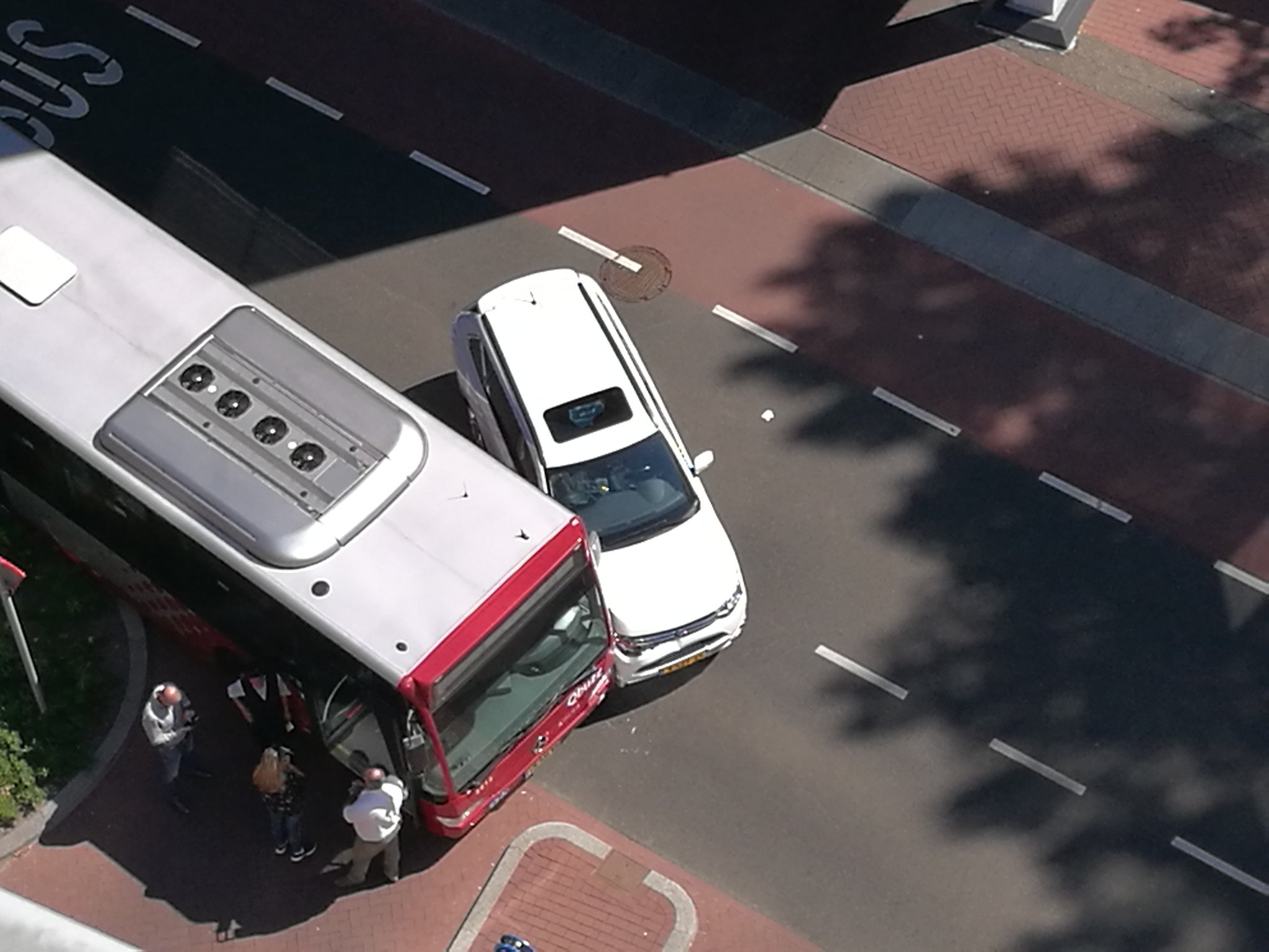 De personenauto is door de bergingsdienst afgesleept. De bus kon zijn weg vervolgen.