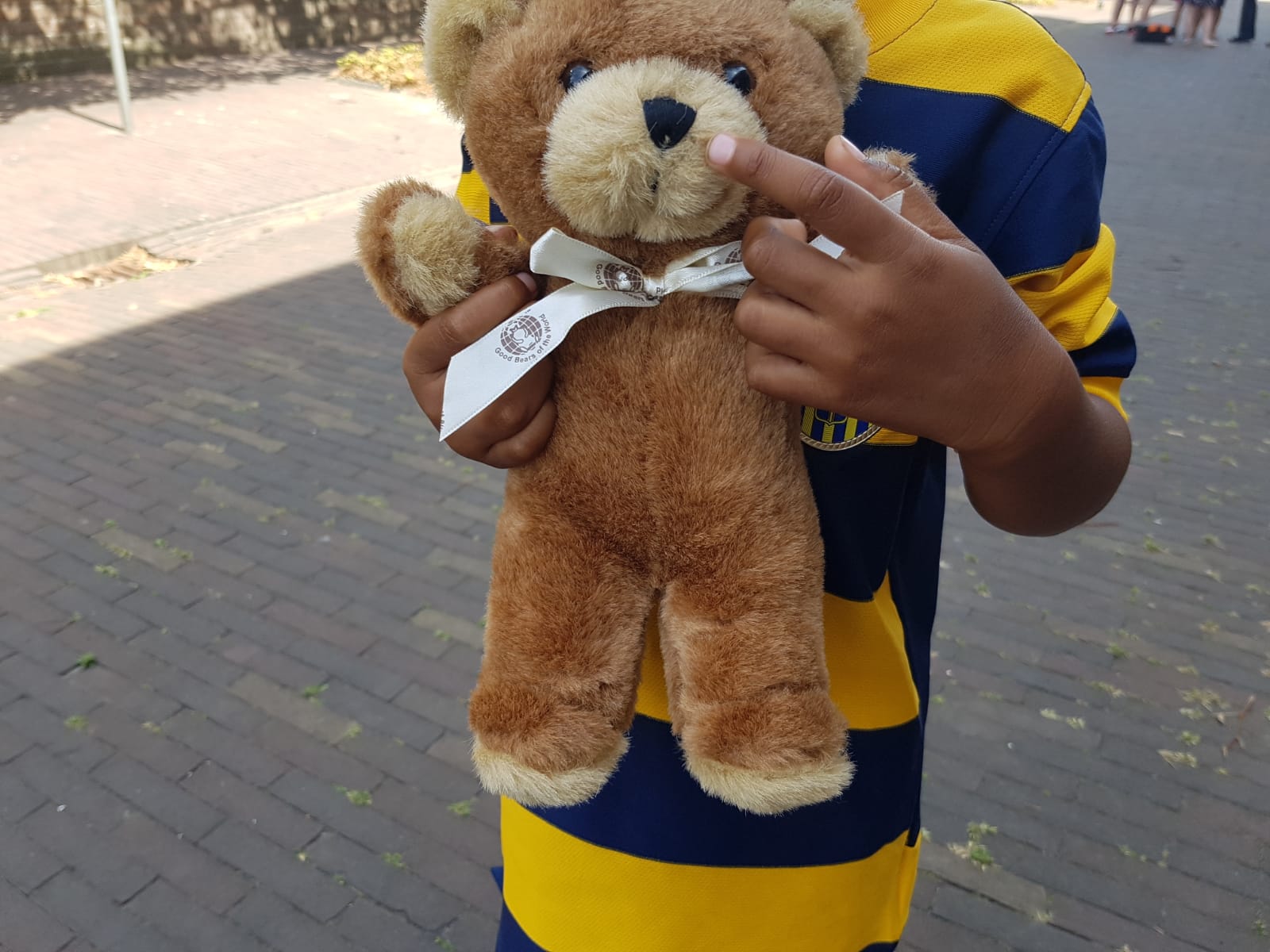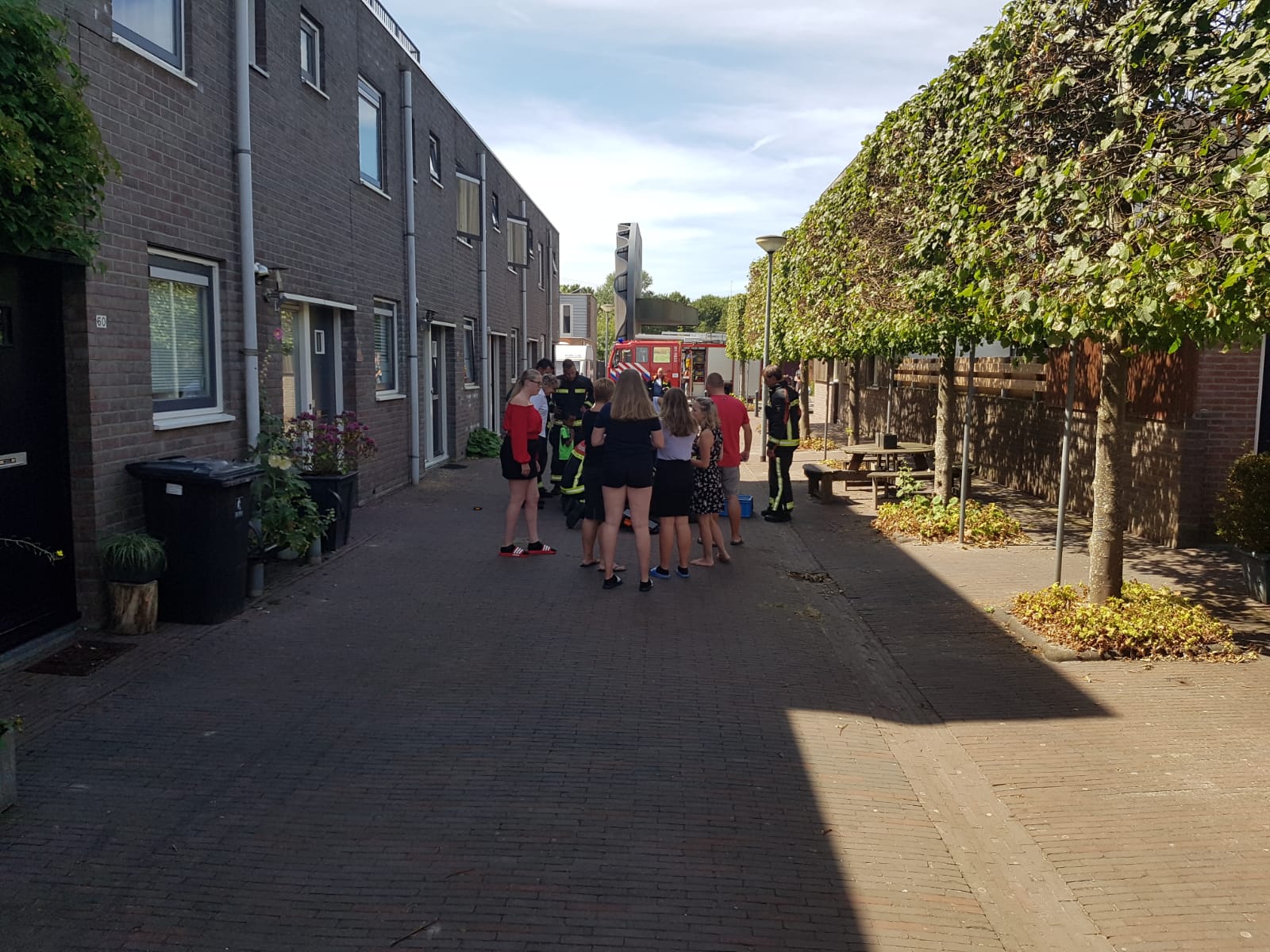 Binnen vijf minuten hadden de brandweerlieden het kind bevrijd, dat niet gewond raakte. Vanwege de schrik kreeg hij een teddybeer uit handen van de stoere brandweermensen.