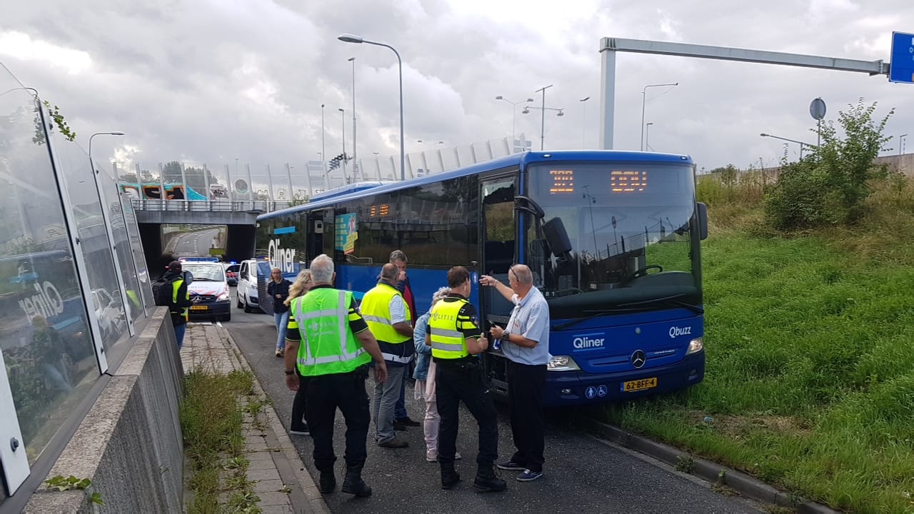 Een lijnbus en een bestelbus zijn maandagochtend op de oprit naar het Emmaviaduct met elkaar in botsing gekomen.
