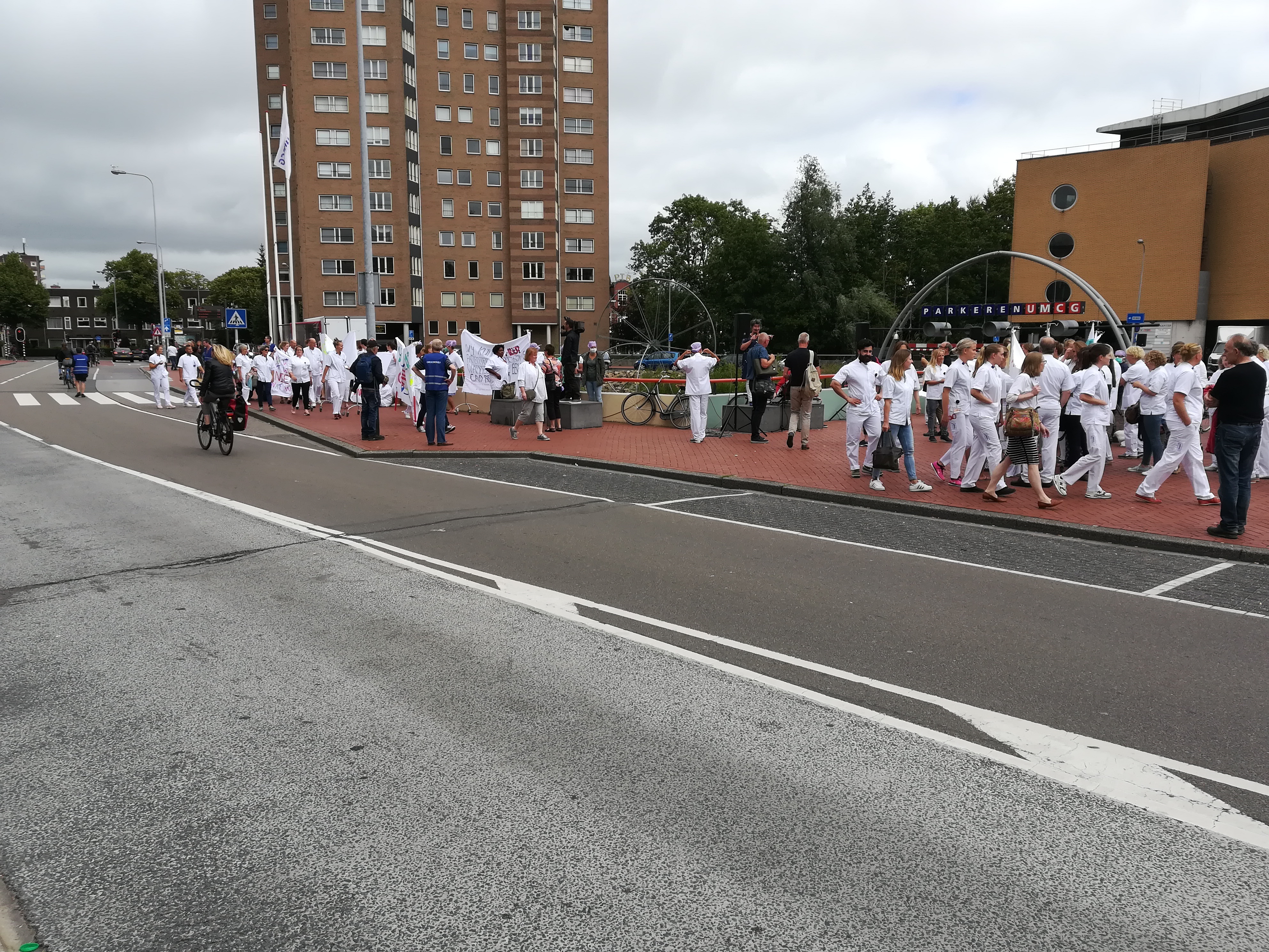 Dinsdag 14 augustus houden honderden werknemers van het UMCG een stille tocht door het ziekenhuis. Zij komen in actie voor een goede cao voor de universitaire ziekenhuizen