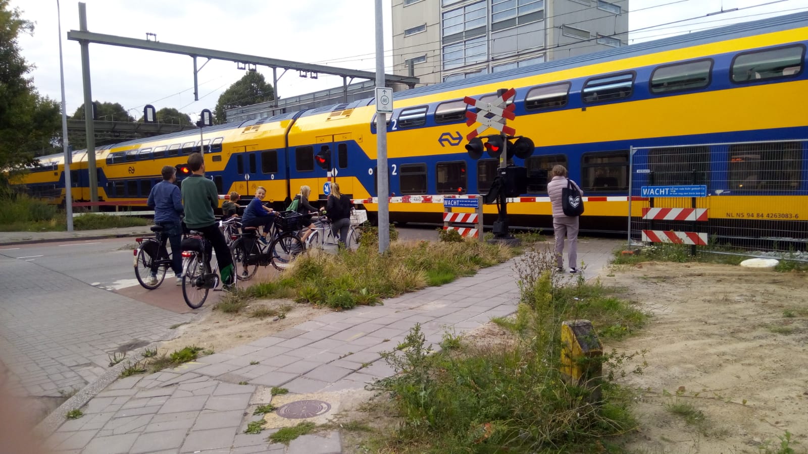 Een intercitytrein van de NS heeft maandagavond bijna een kwartier lang stil gestaan op de spoorwegovergang bij de Esperantokruising. Dat meldt de incidentenwebsite meterfotografie.nl.