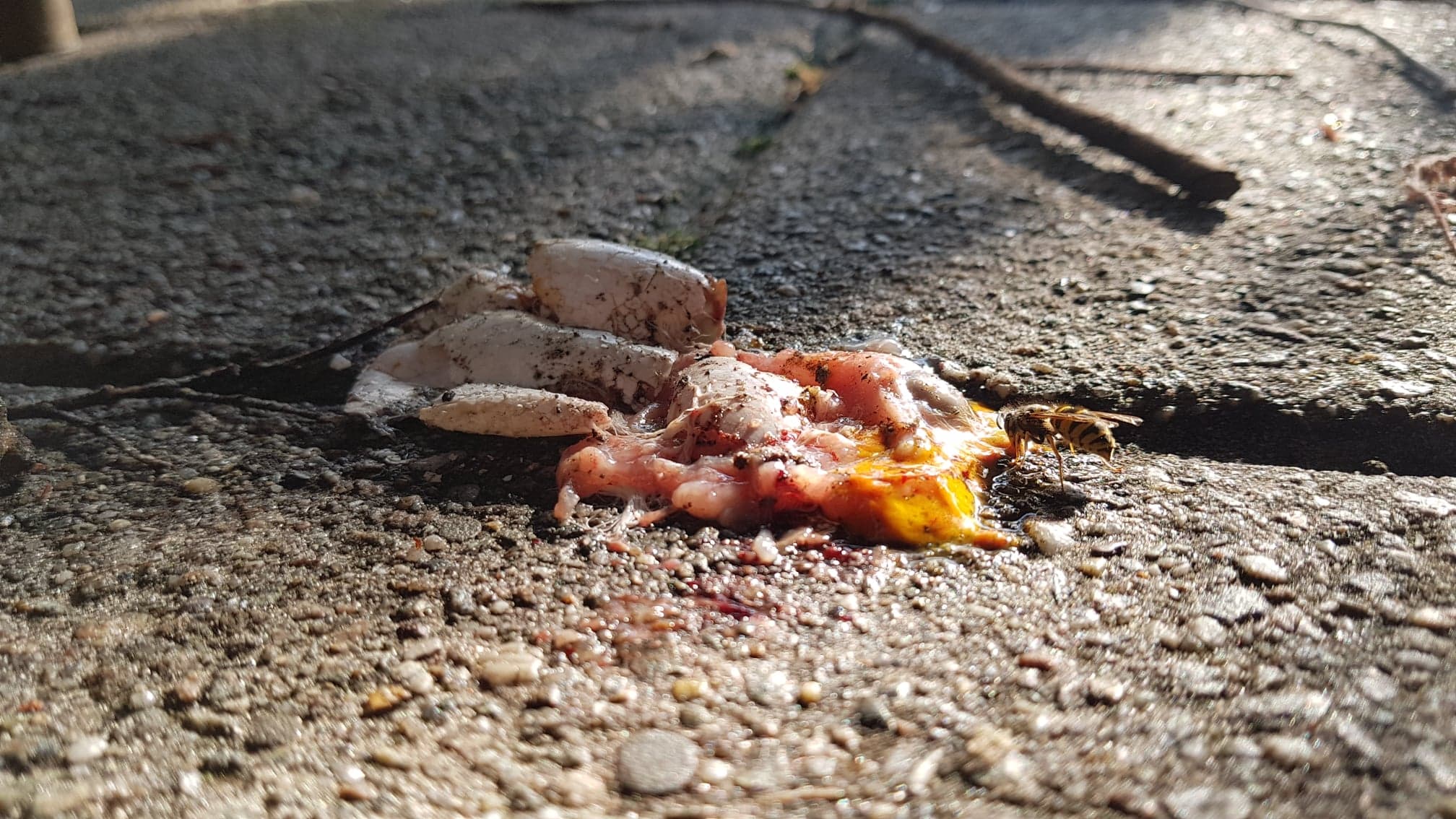 “Je ziet dat wespen zich al tegoed doen aan de eieren die op het punt stonden uit te komen, ik zal het zo opruimen”, vervolgt zij. “Nu maar hopen dat de duiven volgend jaar weer een poging doen”.