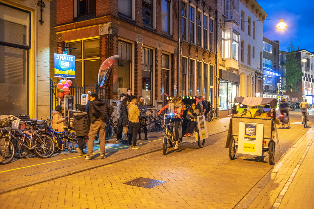 De Groninger Museumnacht afgelopen weekeinde was met zo’n 3500 bezoekers weer uitverkocht. Duizenden mensen bezochten de vijf musea via fietstaxi’s, per boot of lopend door de stad.