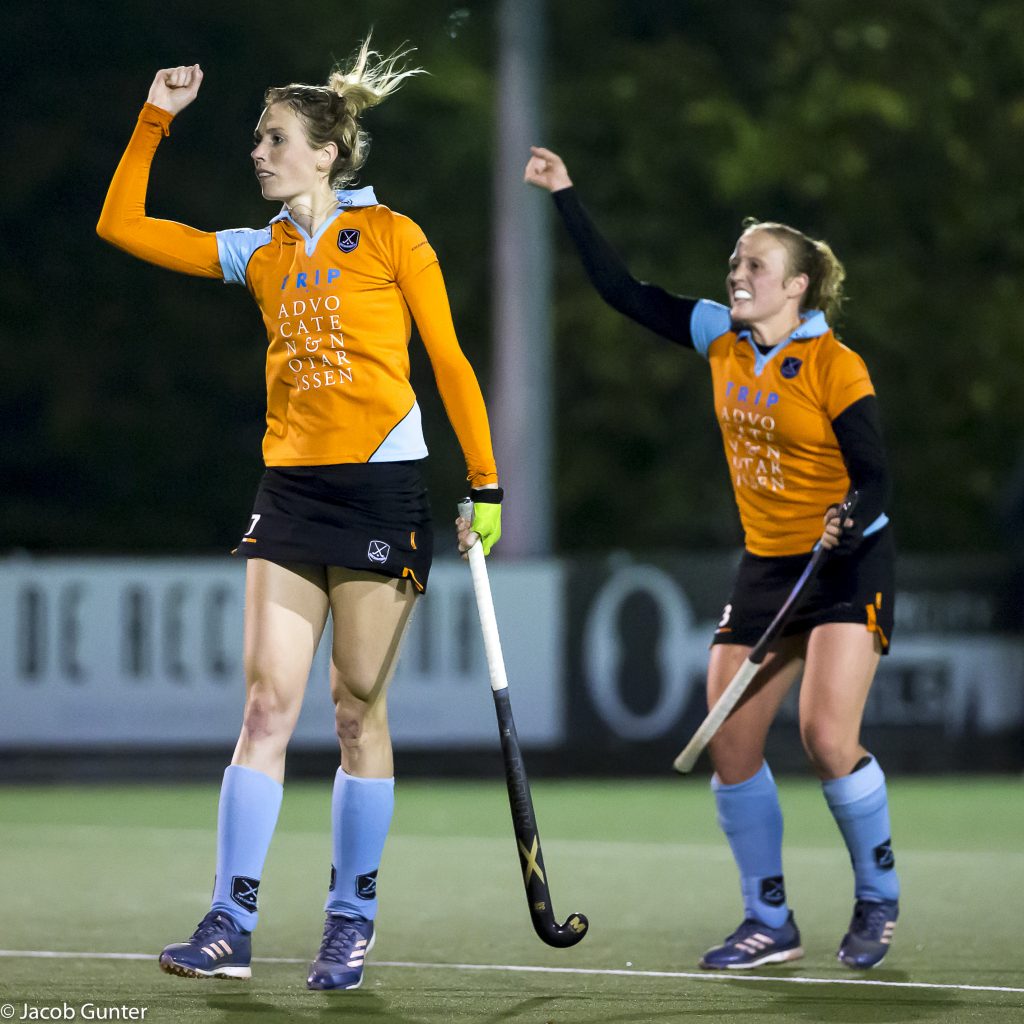 Willemijn Bos-Kuis en Anouk v.d. Berg vieren de 2-0. Foto: Jacob Gunter