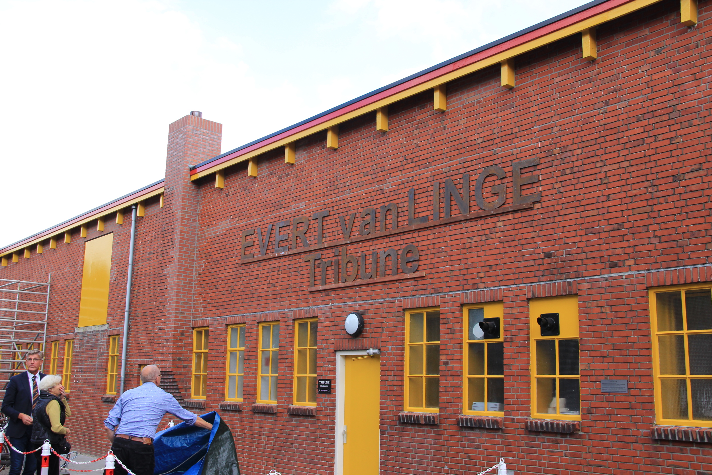 De monumentale zittribune van hoofdklasser Be Quick 1887 is zondag vernoemd naar zijn ontwerper Evert van Linge. De onthulling werd verricht door D. Duit-van Linge, de dochter van Evert van Linge.
