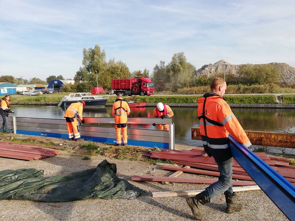 Bij hoog water kan deze scheepswerf de voeten droog houden door de mobiele noodwaterkering, meldt de gemeente op Facebook