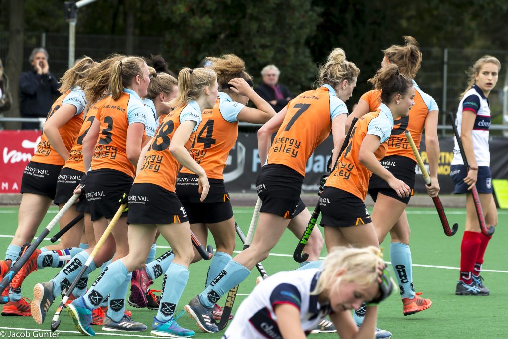 Er was sprake van een echt degradatieduel, want beide teams hadden uit 7 duels nog maar 1 punt behaald. GHHC kwam in de 10e minuut op achterstand via een doelpunt van Vera van Schagen, die keepster Jantien Gunter omspeelde. GHHC had toen nog een uur de tijd om de stand een beter aanzien te geven, maar ondanks een veldoverwicht lukte dat lange tijd niet. Pas in de laatste minuut viel dan toch de verdiende gelijkmaker, na een strafcorner. Noor Hakker zorgde op de valreep voor de 1-1 eindstand.