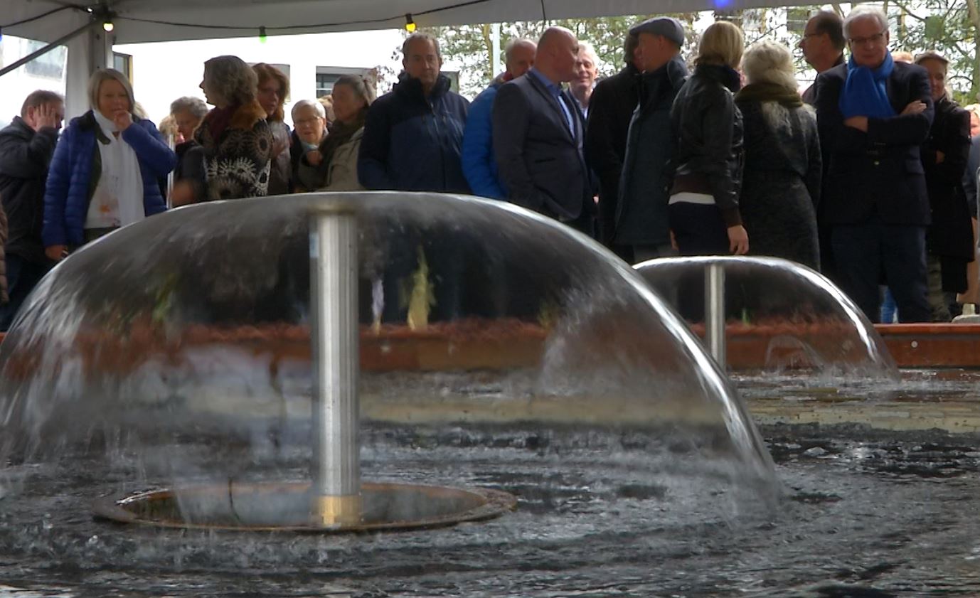 Huzarenstukje van het plein is een fontein die maandagmiddag met een druk op de knop in werking werd gezet. “Het is een yin yang-fontein die tezamen met de tuin hopelijk levendigheid maar tegelijkertijd ook rust in de buitenlucht gaat brengen.”