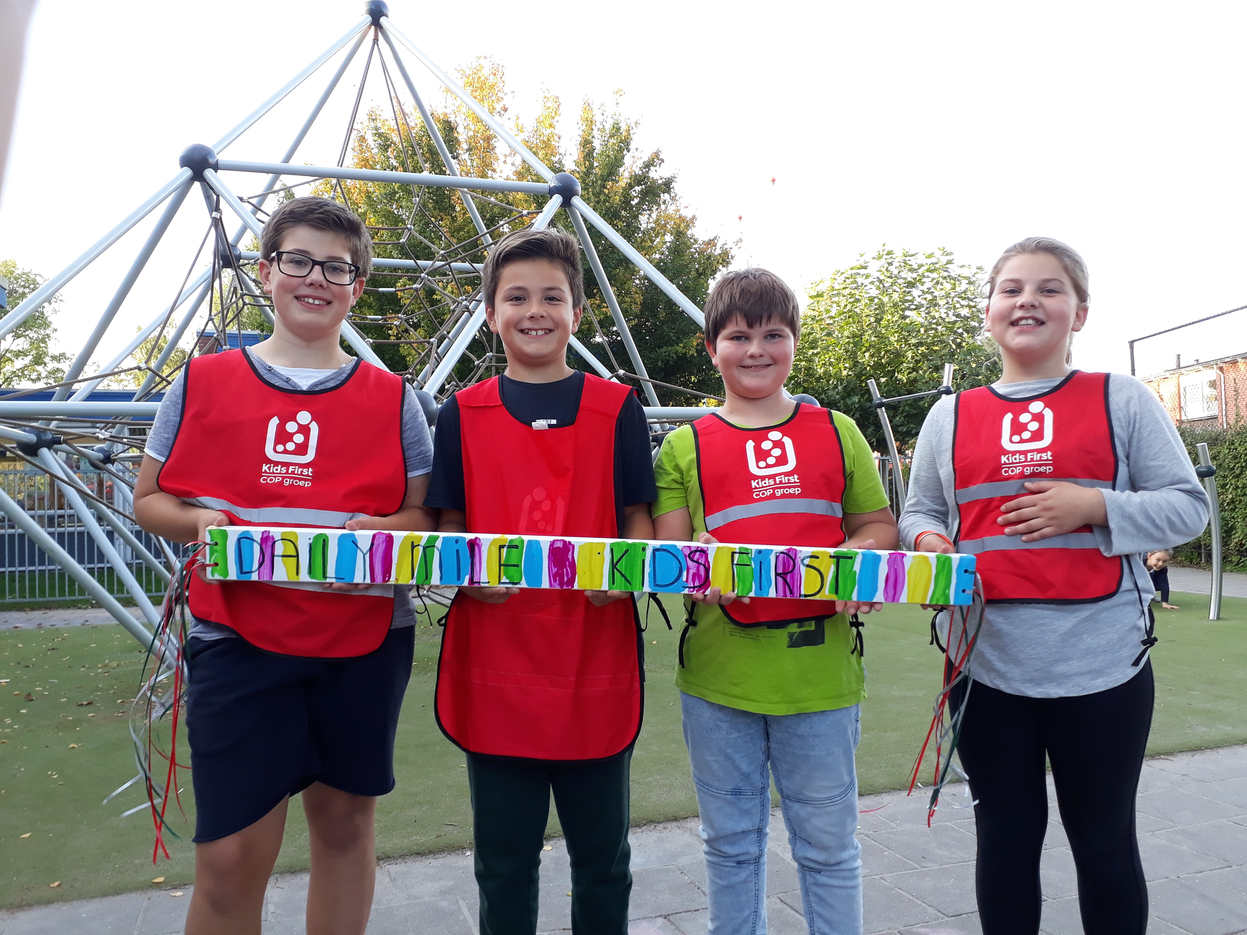 Verschillende BSO’s van Kids First organiseerden gisteren in de stad een estafetteloop voor kinderen. Ze hebben allemaal ongeveer twee kilometer gewandeld.