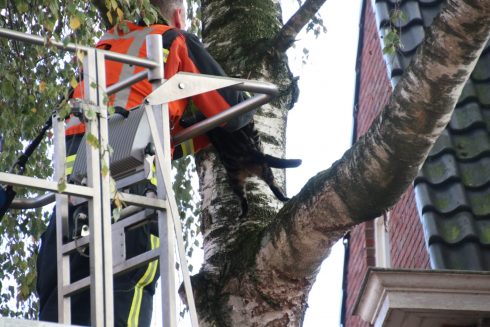 De Groninger brandweer moest zondagmiddag in actie komen op de Lingestraat in de Rivierenbuurt om een bange kat uit een boom te bevrijden. Dat meldt de incidentenwebsite 112groningen.nl.