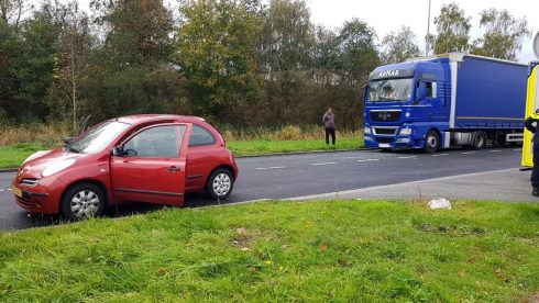 Het ongeluk vond woensdag in het begin van de middag plaats op de kruising met de Peizerweg. Door nog onbekende oorzaak kwamen een vrachtwagen en een personenwagen met elkaar in botsing. Toen hulpverleners ter plaatse kwamen bleek dat twee mensen gewond waren geraakt. Naar alle waarschijnlijkheid gaat het om inzittenden van de personenauto.
