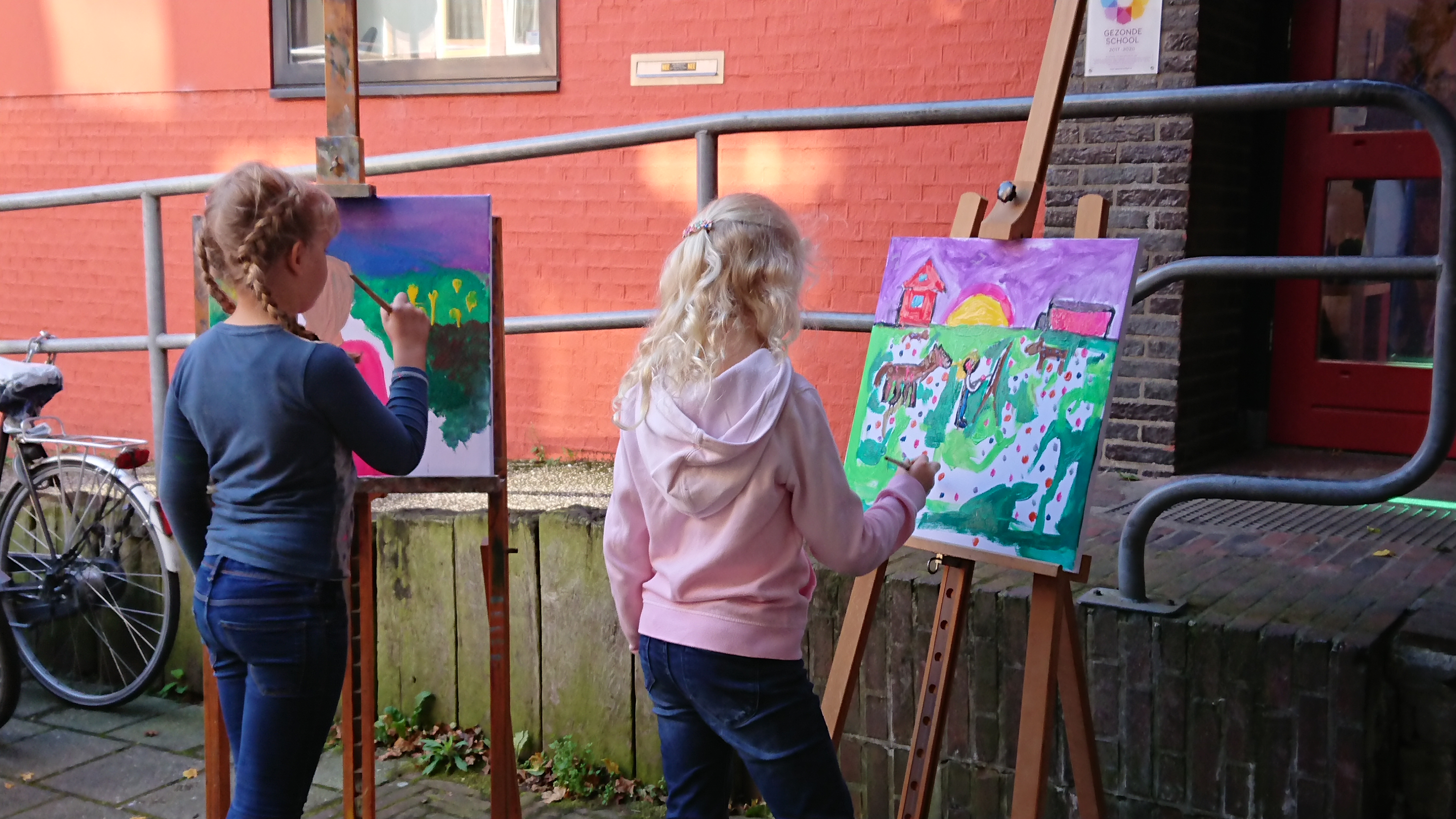 Met veel kleurgebruik kwamen de kunstwerken van de Ploeg vandaag weer tot leven op de Sint Michaelschool aan de Butjesstraat.