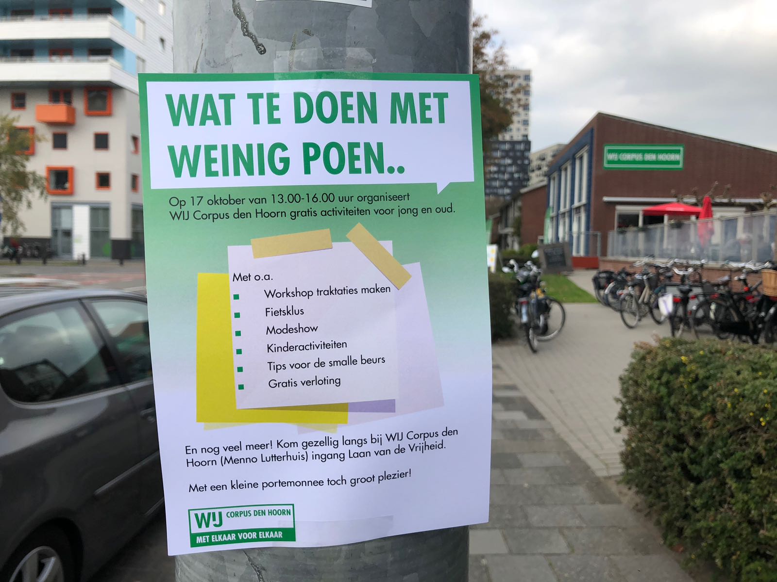 Het was woensdag internationale dag van de uitroeiing van de armoede. Dit was voor het WIJ team in Corpus den Hoorn een mooie aanleiding om ” Wat te doen met weinig poen” te organiseren.