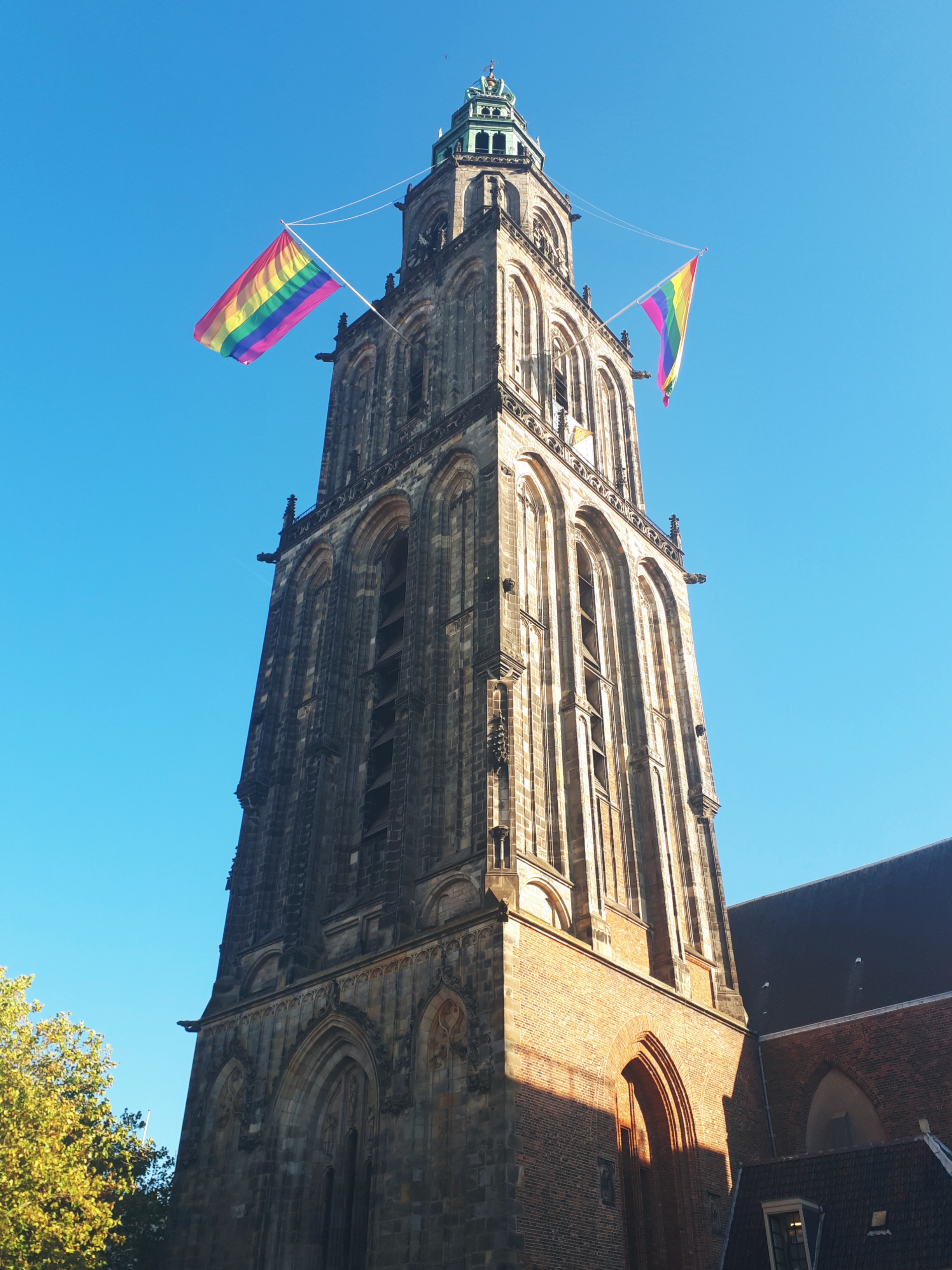 De regenboogvlag wappert vandaag op de Martinitoren want het is International Coming Out Day! In het kader van deze dag wordt vandaag het Regenboogsymposium georganiseerd door verschillende belangenorganisaties, waaronder het COC Groningen en Drenthe en het Discriminatie Meldpunt Groningen. Tijdens dit symposium ondertekenen alle Groningse gemeentes in het Provinciehuis het Regenboogconvenant. Hierbij beloven gemeenten zich in te zetten voor de veiligheid, weerbaarheid en sociale acceptatie van LHBTI’ers in onze provincies.