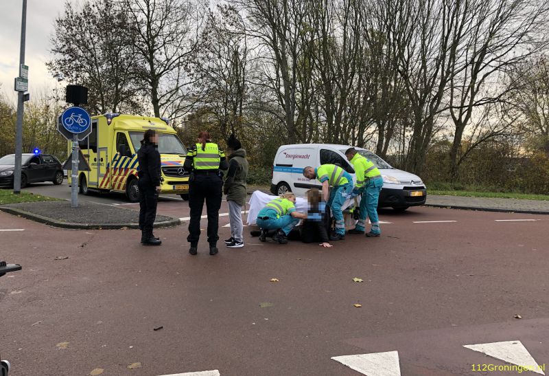 Ze botste bij de Gerrit Krolbrug tegen een auto en kwam hard ten val.