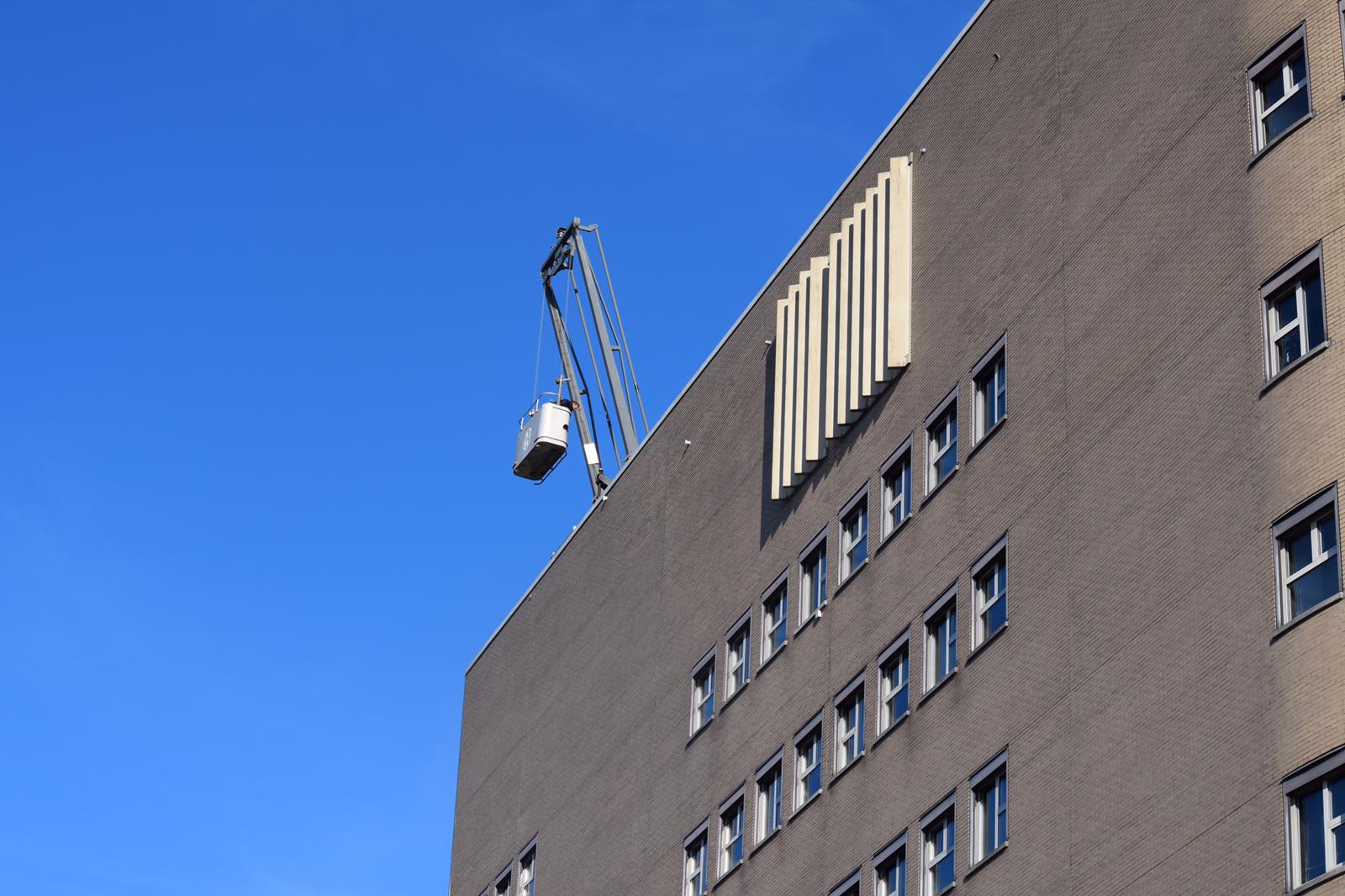 De melding kwam rond 12.45 uur binnen waarop de brandweer uitrukte met een bluswagen en een hoogwerker. Bij aankomst bleek het bakje vast te zitten ter hoogte van de bovenste verdieping van het gebouw. Een hoogwerker van de brandweer kon er niet bij. Daarom werd het bakje van de glazenwassers verder omhoog getrokken. De glazenwassers zijn vervolgens via het dak naar de begane grond gebracht.