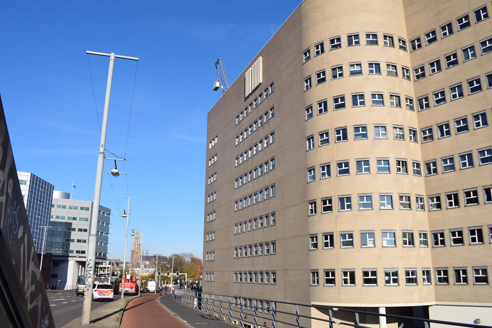 Twee glazenwassers zaten donderdagmiddag vast in een gondel bij het KPN-gebouw op het Stationsplein. De brandweer heeft de mannen inmiddels uit hun benarde positie gehaald.