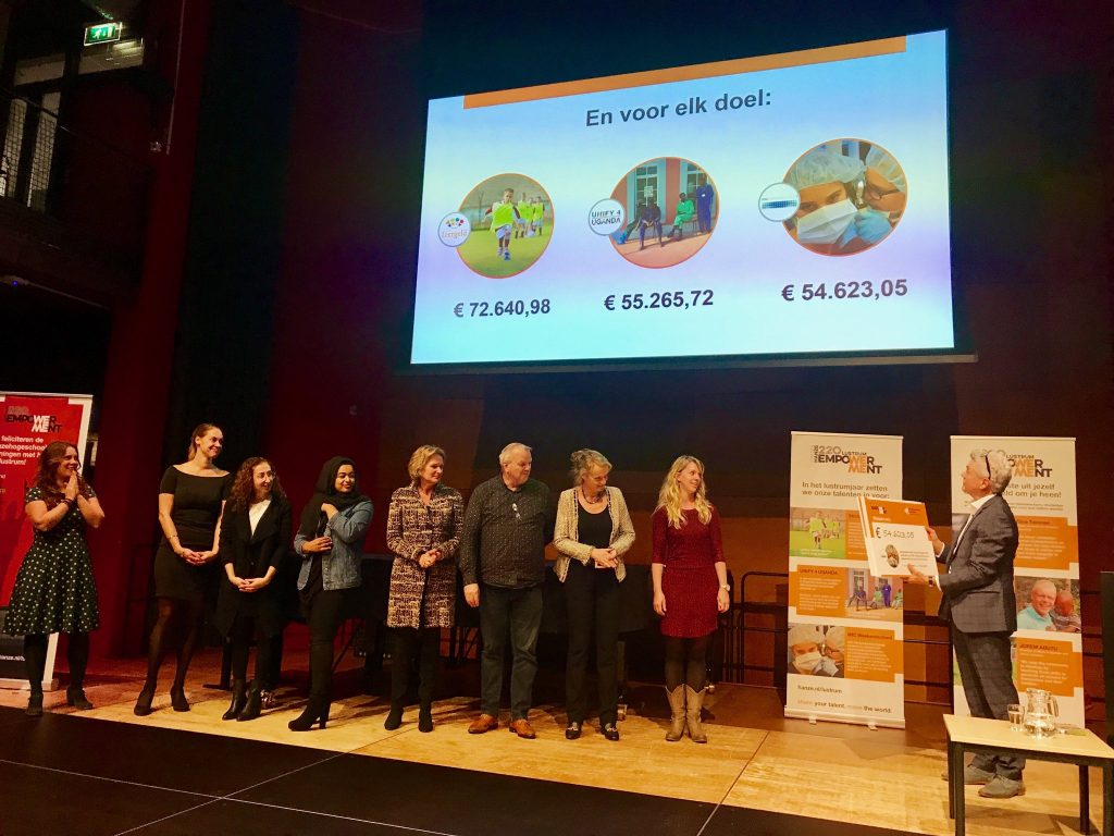 Tijdens de feestelijke slotbijeenkomst in het Prins Claus Conservatorium werden de bedragen bekend gemaakt die per doel zijn opgehaald. Dat was voor de IMC Weekendschool € 54.623,05 voor Stichting Leergeld € 72.640,98 en voor Unify4Uganda € 55.265,72.