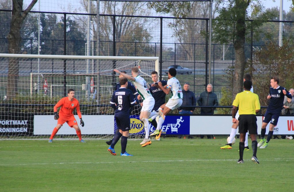 VVOG bleef er daarom in geloven en kwam in de slotfase nog bijna langszij toen doelman Jan Hoekstra een vrije trap niet onder controle kreeg. Jong FC Groningen steeg door de winst naar de vierde plek in de derde divisie op zaterdag met 21 punten uit 11 wedstrijden. VVOG is tiende.