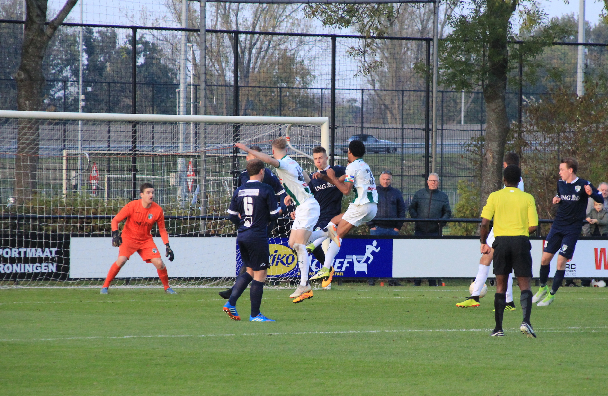 Foto Andor Heij. Jong FC Groningen druk op het doel van VVOG.