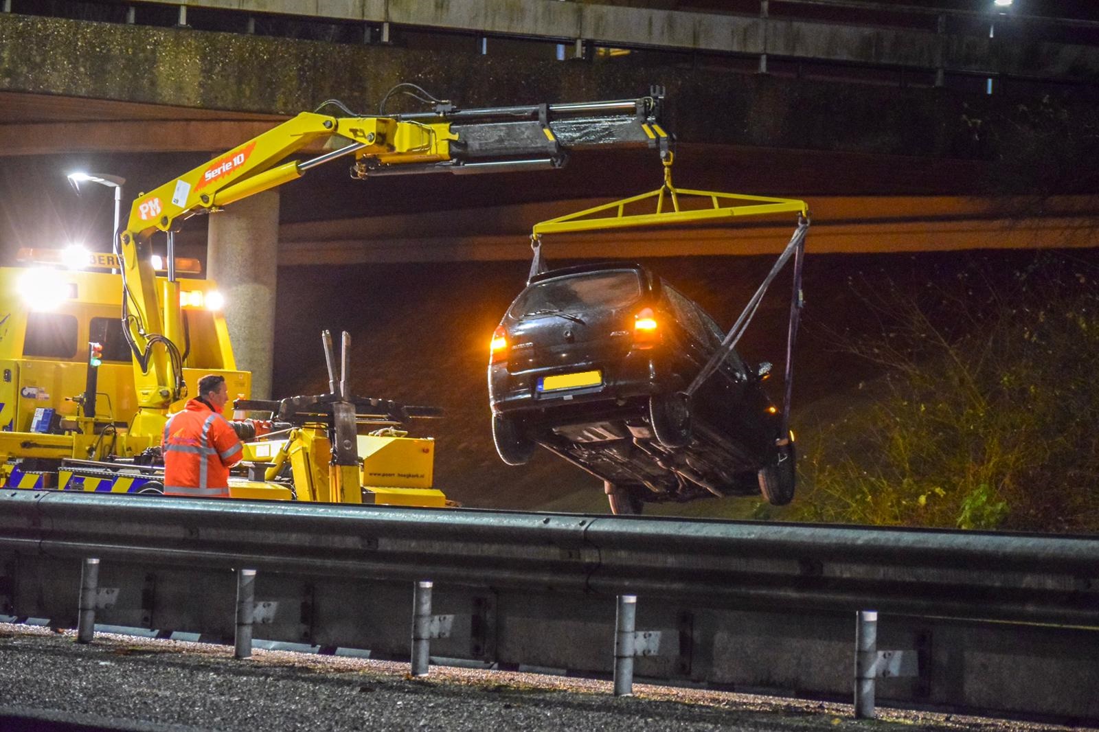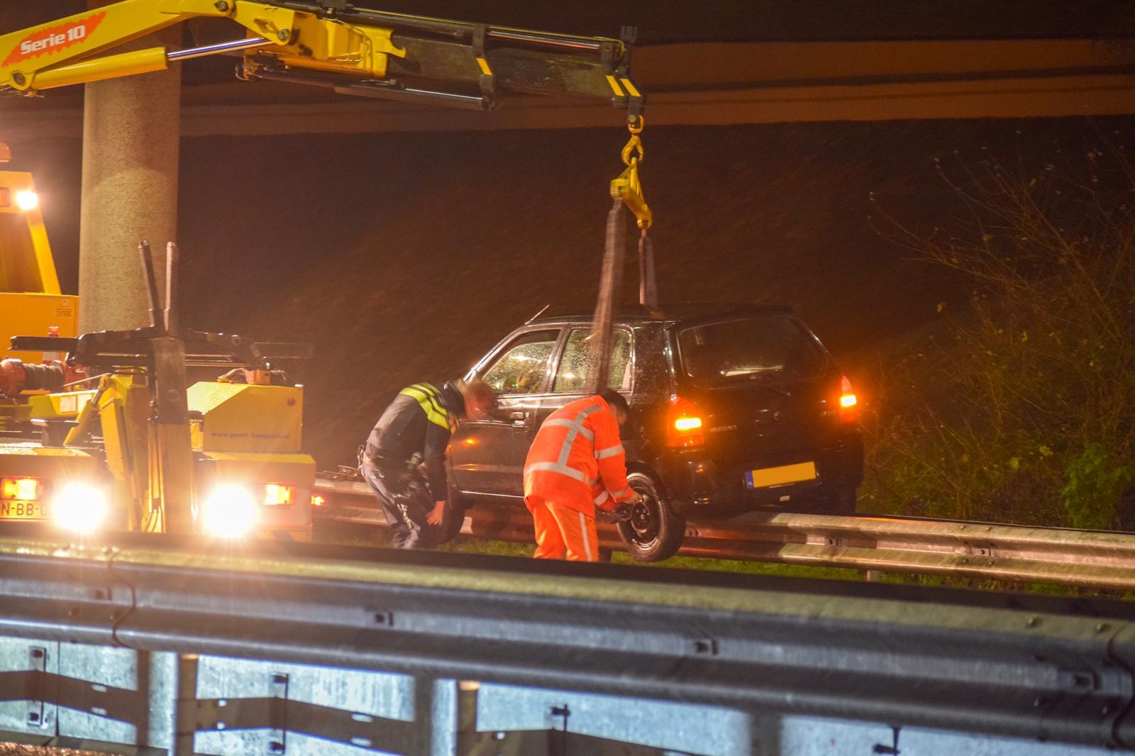 Een bergingsbedrijf heeft de auto geborgen. De politie doet onderzoek naar de toedracht.
