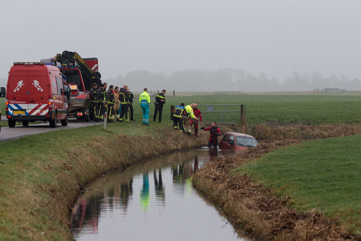 De vinders waarschuwden vervolgens de hulpverleningsdiensten Een duiker van de brandweer is te water gegaan, maar er zat niemand meer in de wagen. Het is nog onduidelijk hoe lang de auto in het water heeft gelegen.